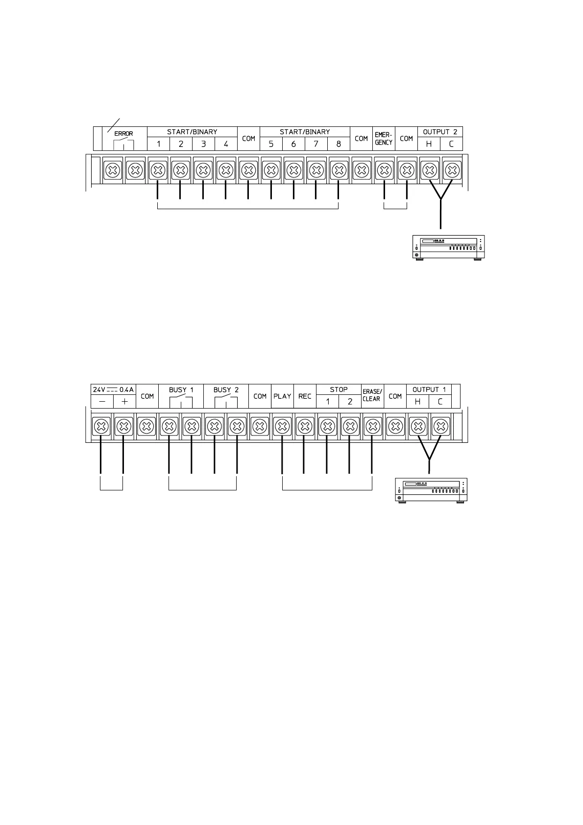 ・The contact capacity is 30 VDC/500 mA or less when using the busy output.