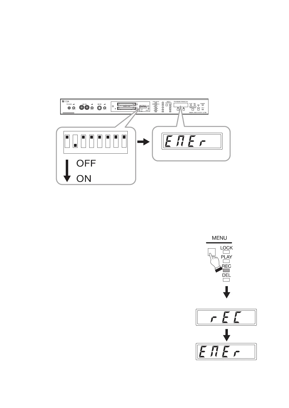 Before performing each front key operation described below, be sure to set only Switch 2 of the DIP switch on
