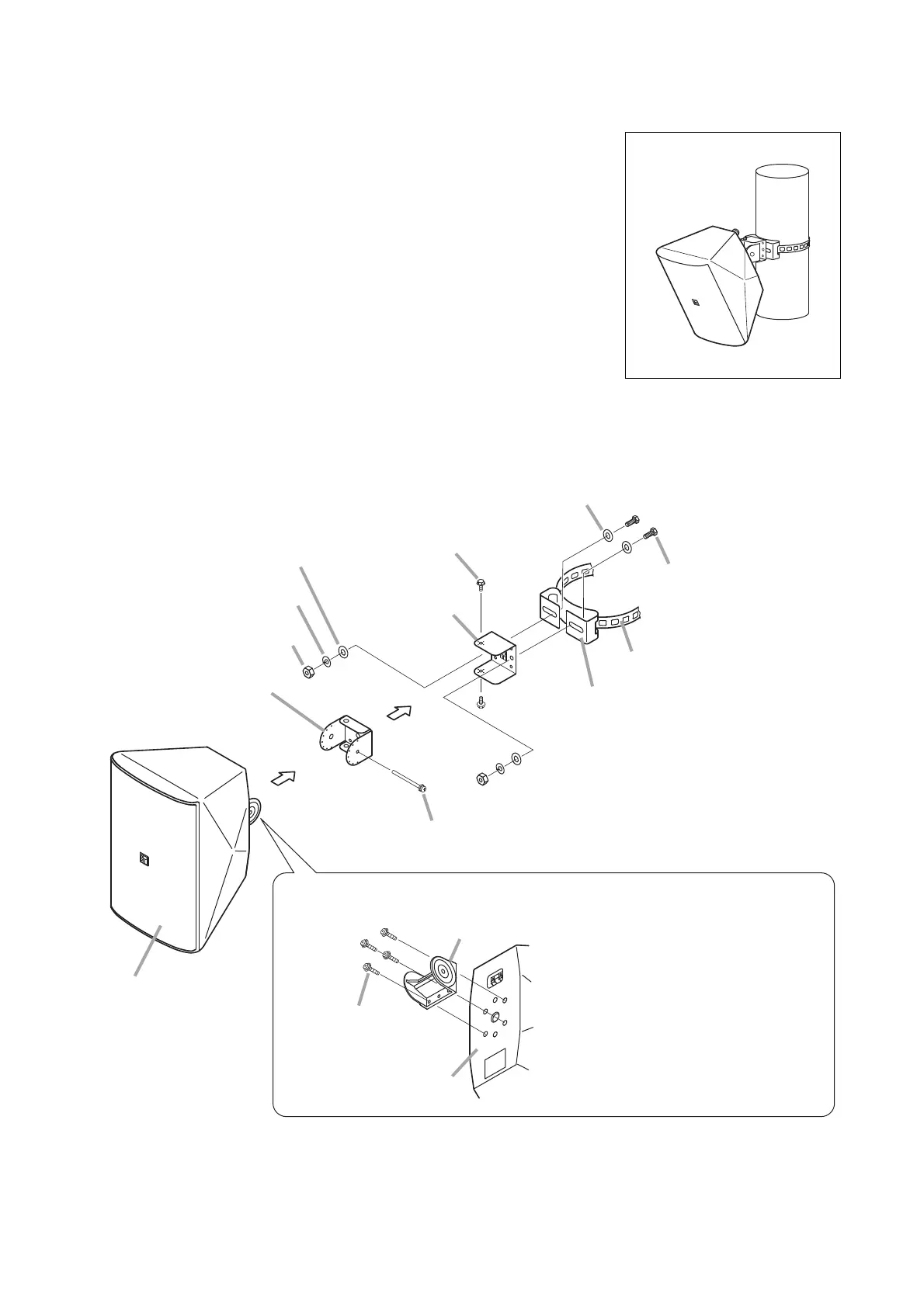 To mount the speaker on a pole with diameter of 9 – 34 cm, use the