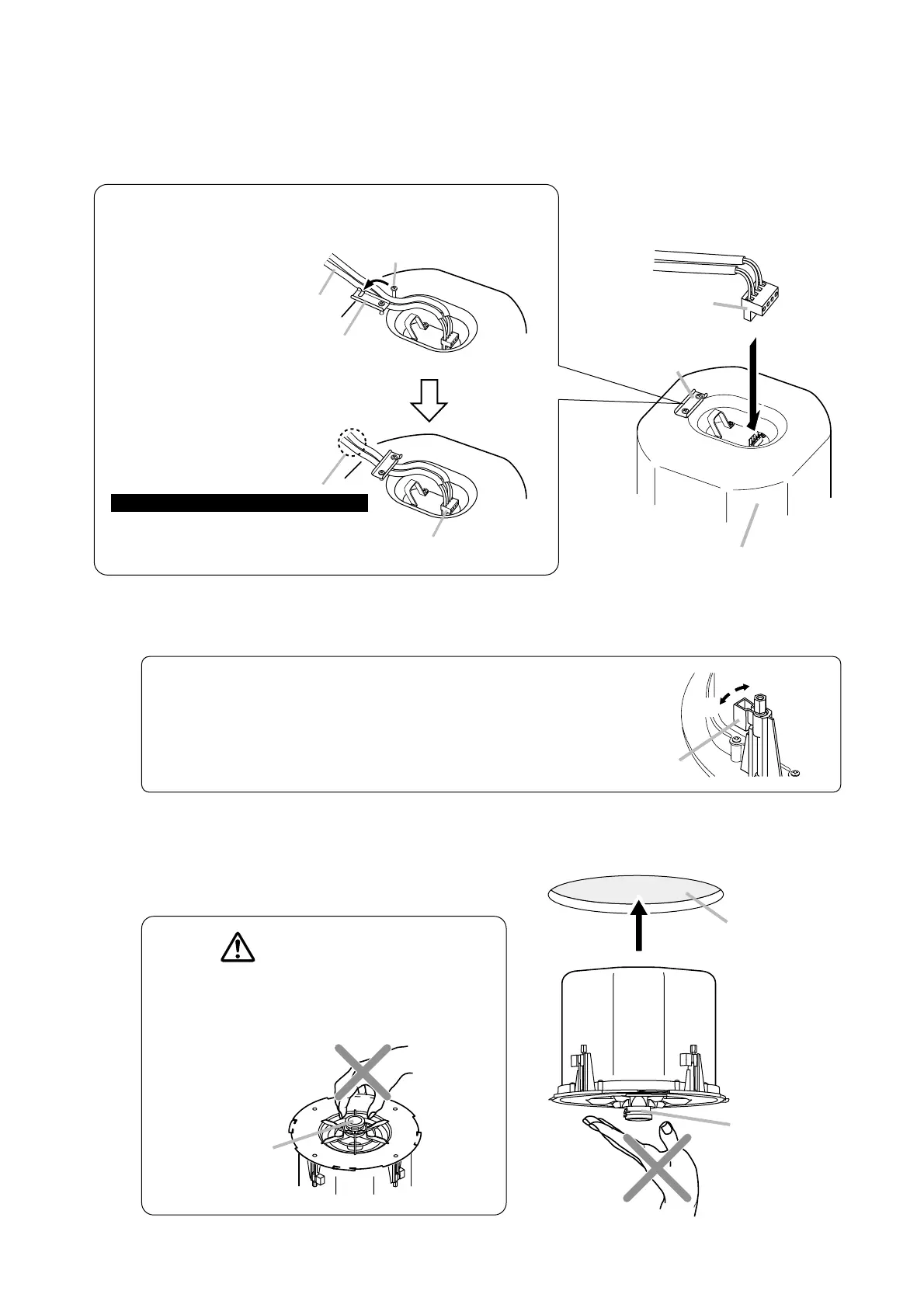 6-1. Insert the speaker through the mounting hole till it contacts the ceiling panel.