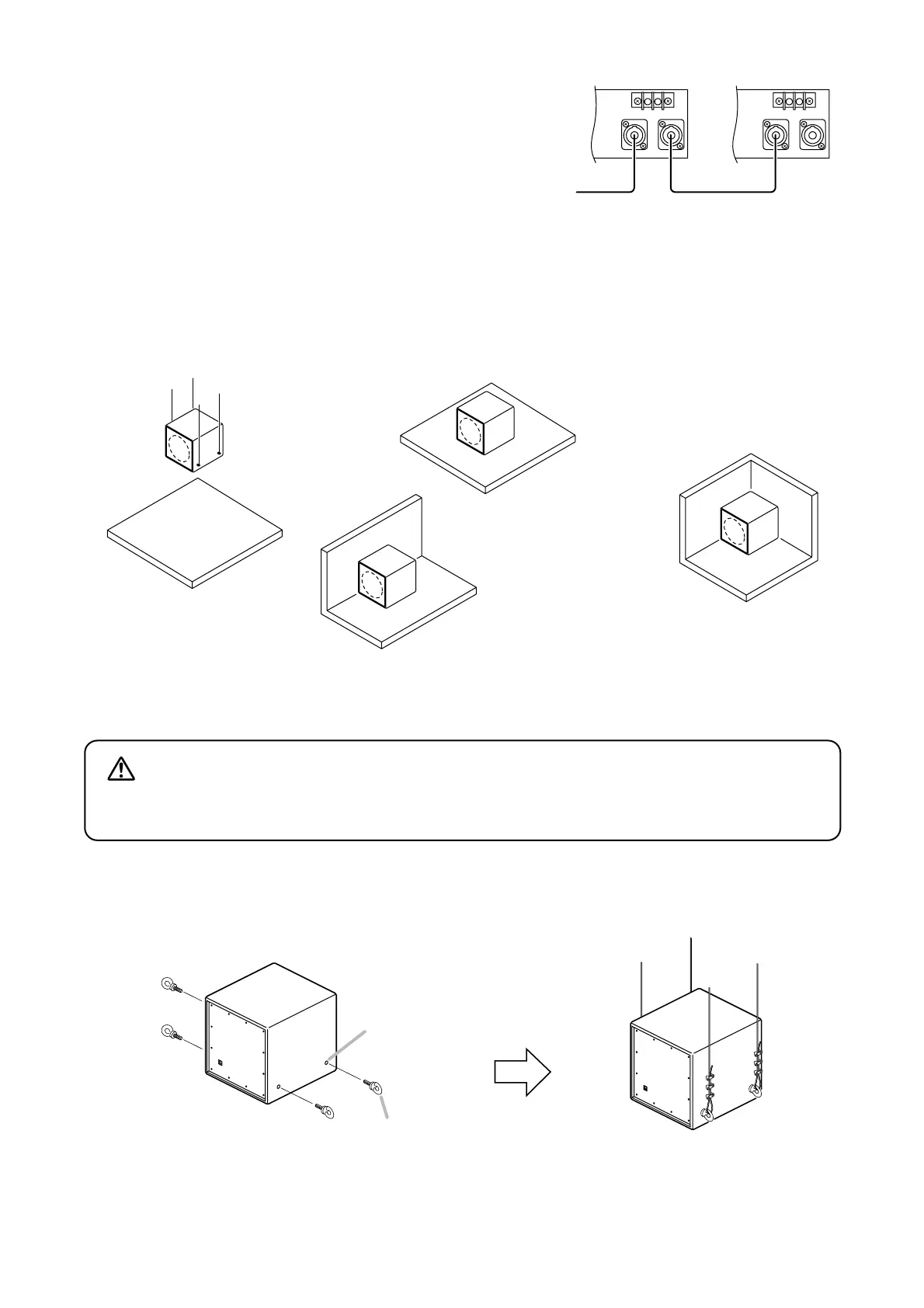 Remove the 4 screws on both sides of the subwoofer system, screw 30 – 50 mm (1 3/16" – 1 31/32") M8 eyebolts into the