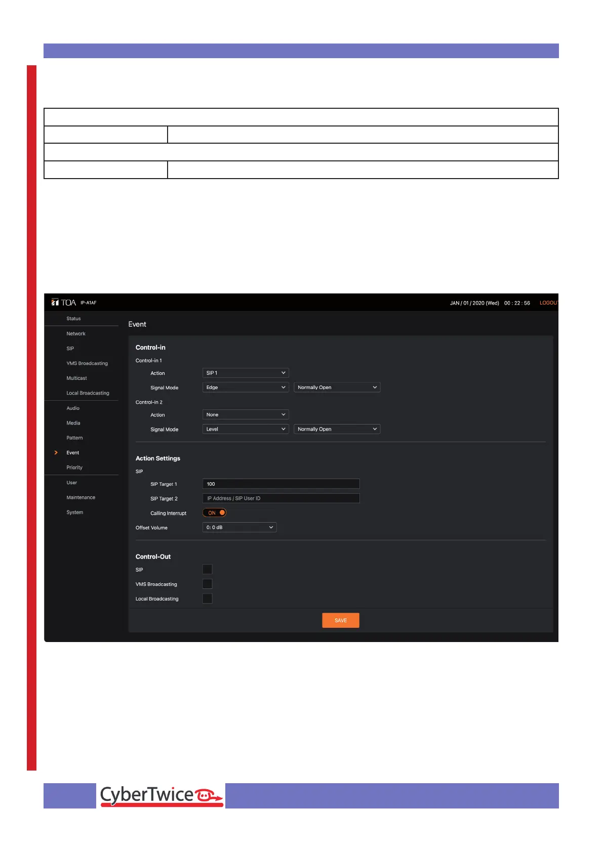 Congure TOA IP Audio Systems for the CyberGate serviceCyberTwice