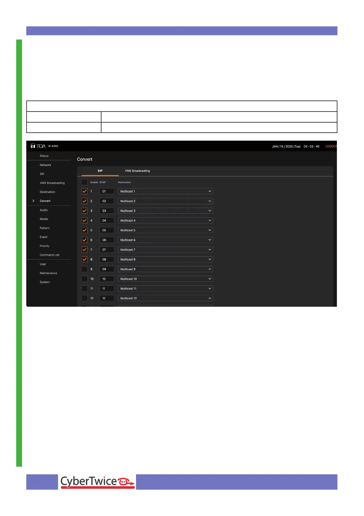 Congure TOA IP Audio Systems for the CyberGate serviceCyberTwice