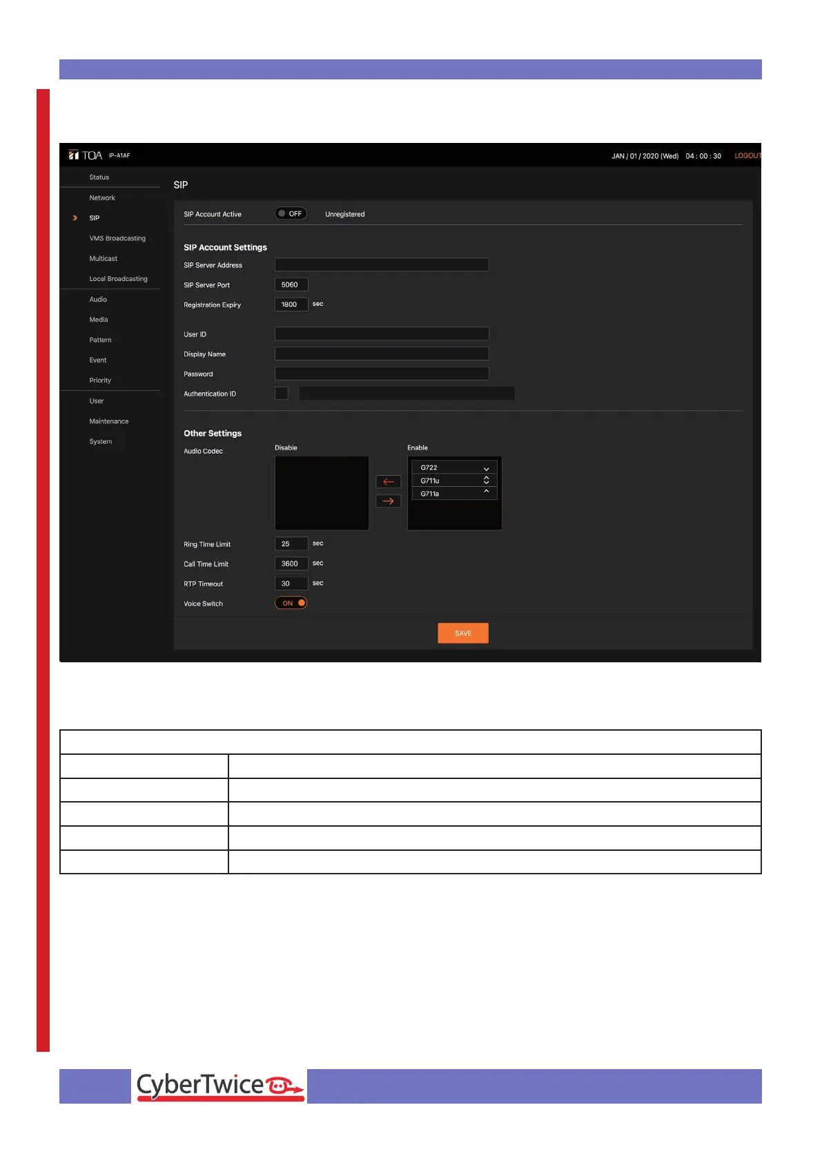 Congure TOA IP Audio Systems for the CyberGate serviceCyberTwice