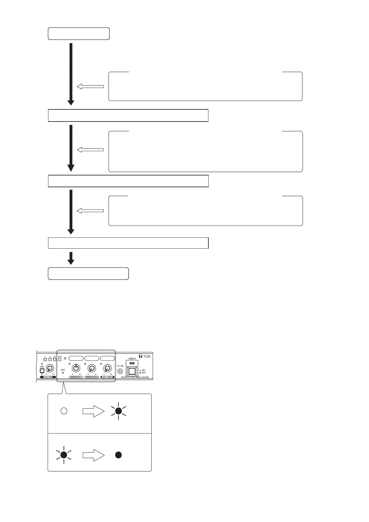 The signals input to the MONO 2 – 6, and STEREO 1 – 3 are muted during