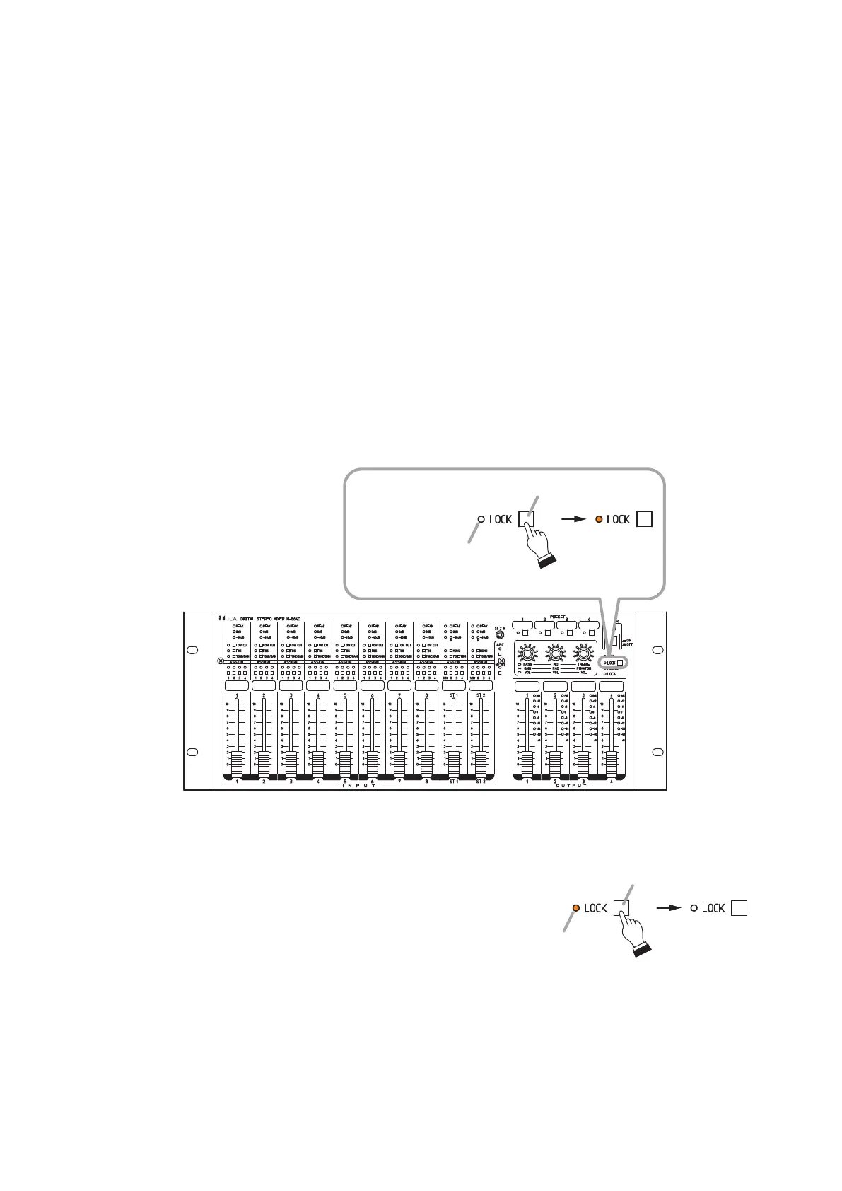 Incorrect operation can be prevented by prohibiting (locking) the M-864D’s front panel operation.