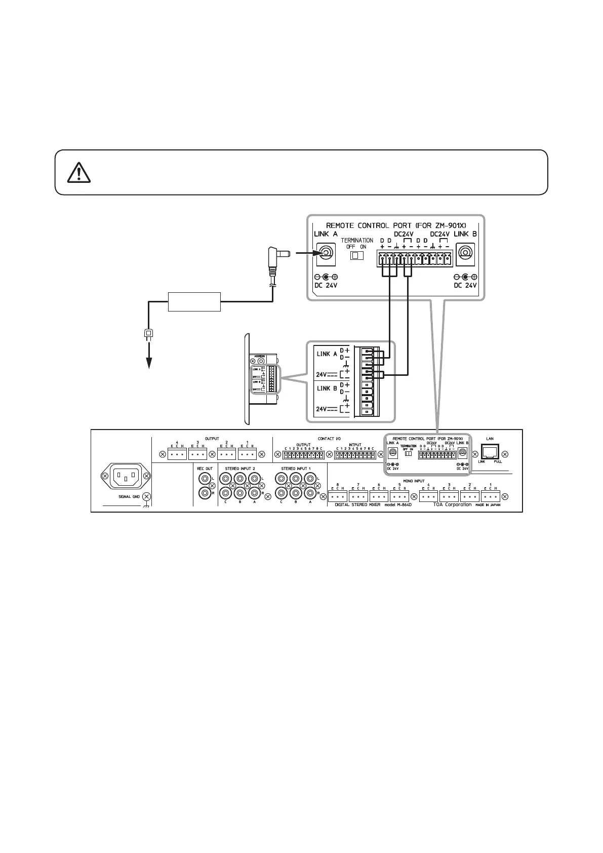• Connect the dedicated AC adapter or its equivalent* to the M-864D to supply power to the ZM Remote