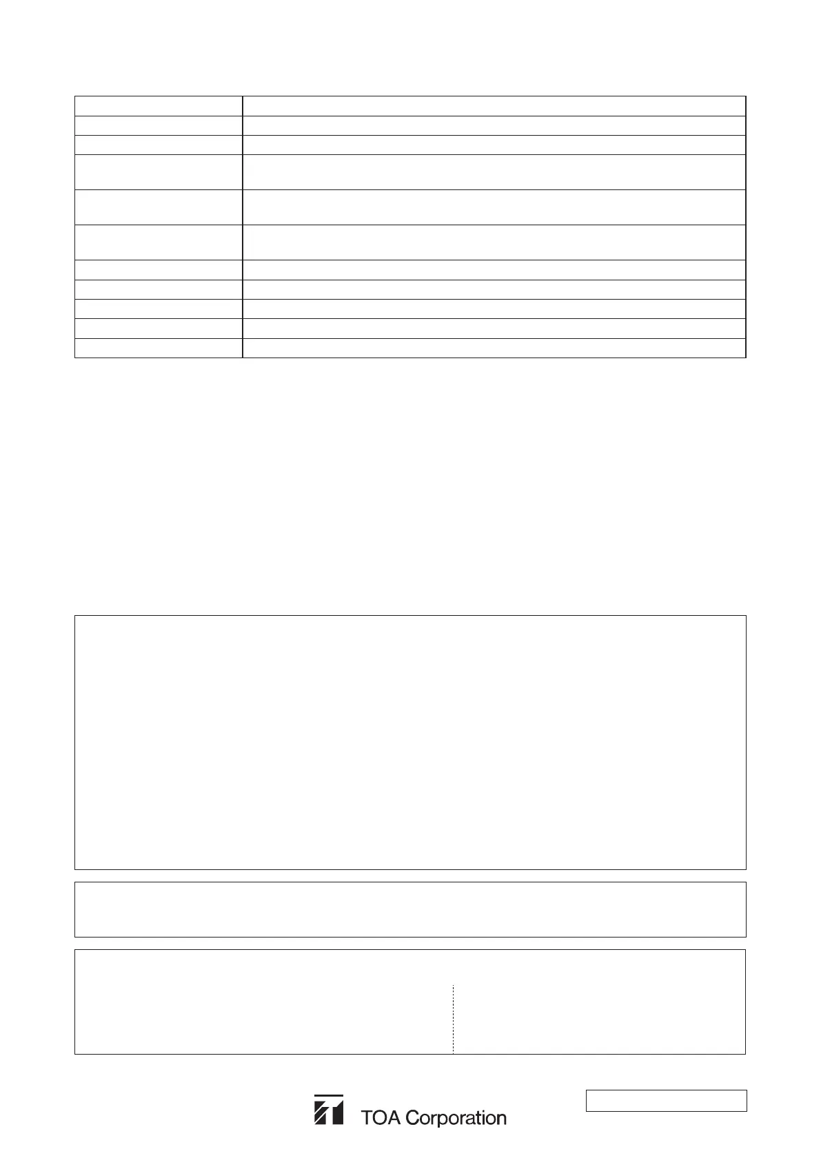 Any modifications made to this device that are not approved by TOA Corporation may void the authority