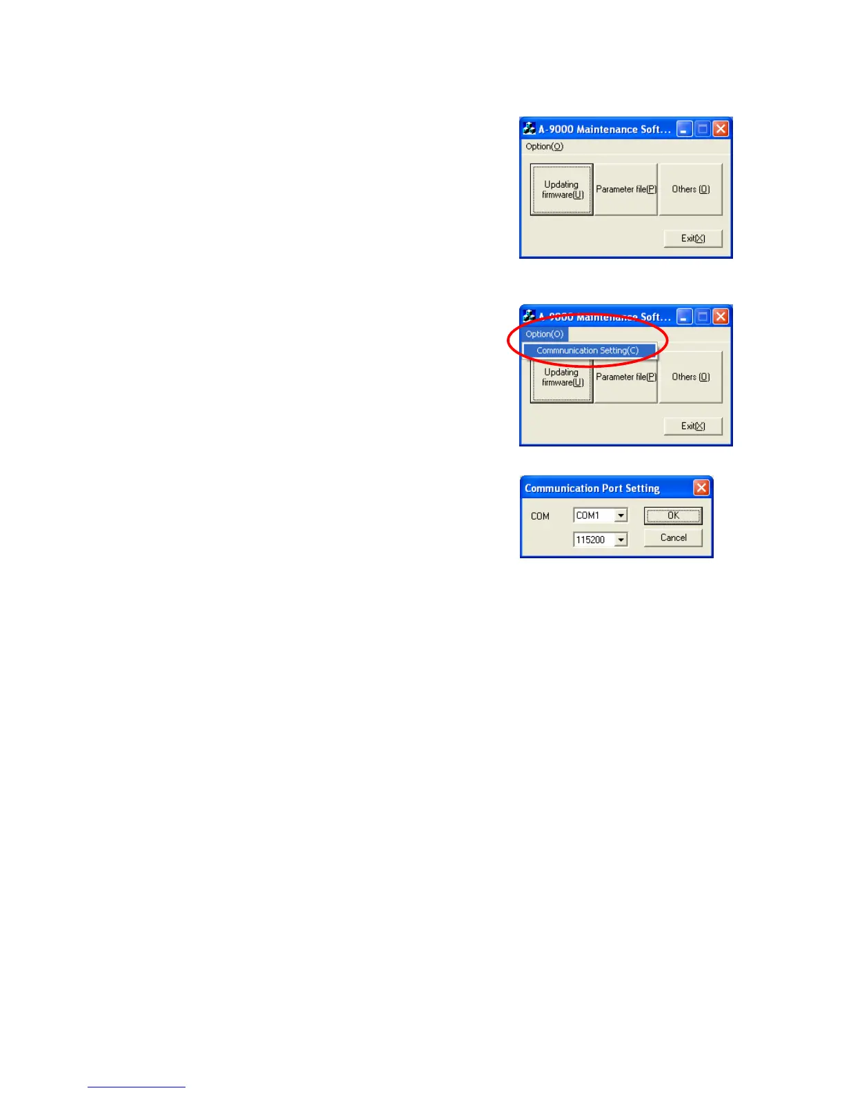 Step 3. Select the communication port and speed to match the connected PC.