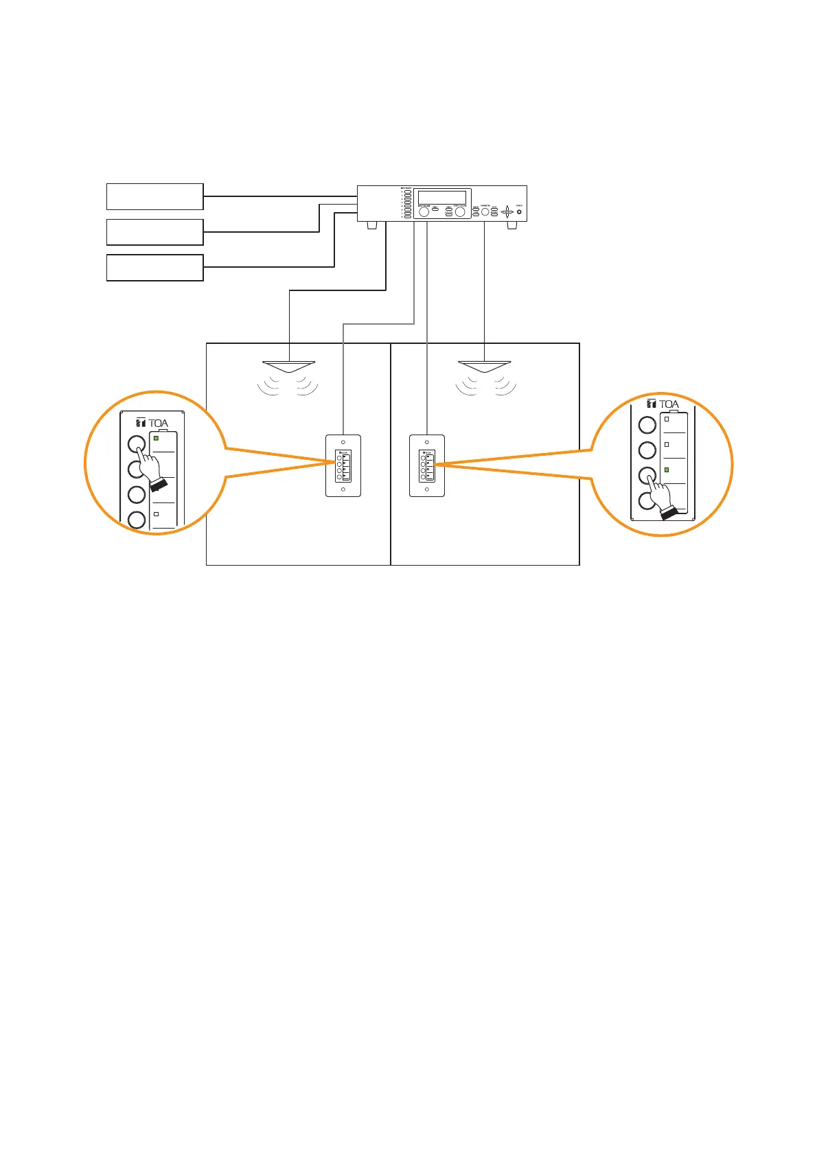 In the system above, the BGM sound source to be broadcast to Zone 1 can be selected with the buttons on
