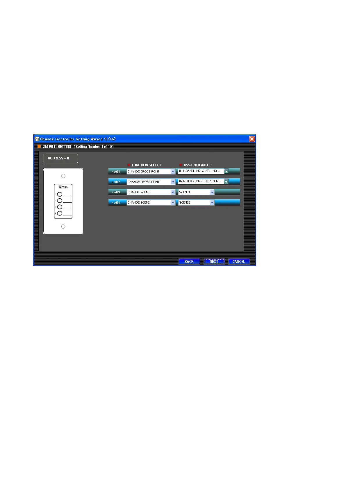 Arbitrary cross points assigned to the buttons on the remote controller can be turned ON or OFF.
