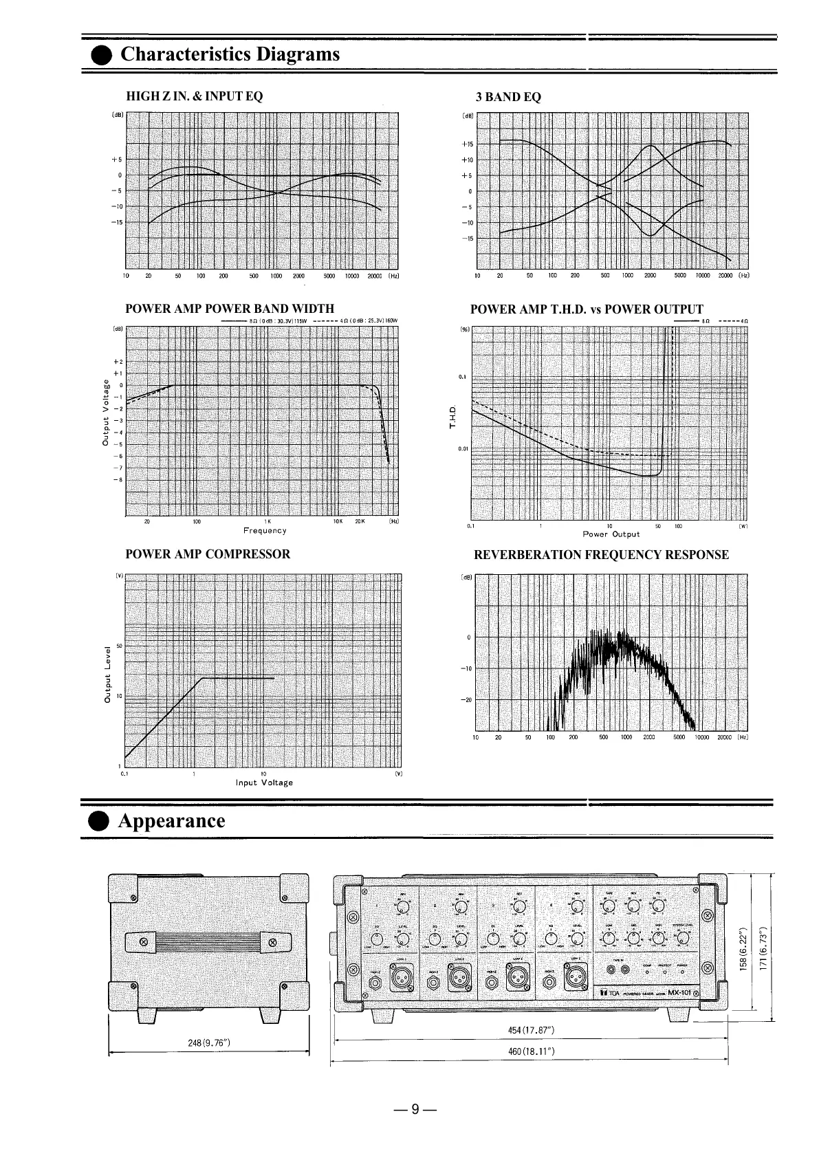 Toa MX-101 - Characteristics Diagrams; Frequency Response and EQ Curves; Power Amplifier Performance; Reverberation Frequency Response