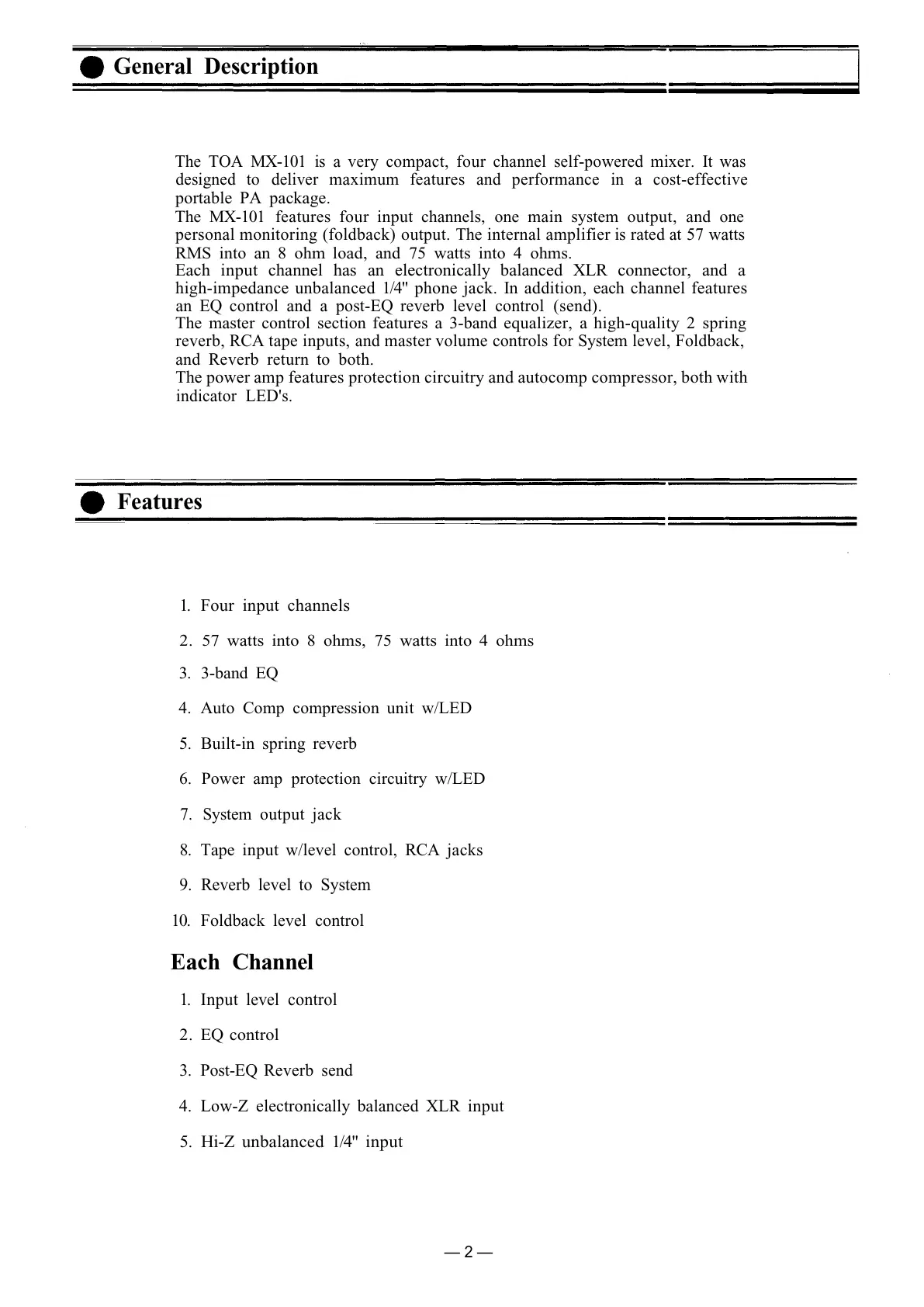 The TOA MX-101 is a very compact, four channel self-powered mixer. It was