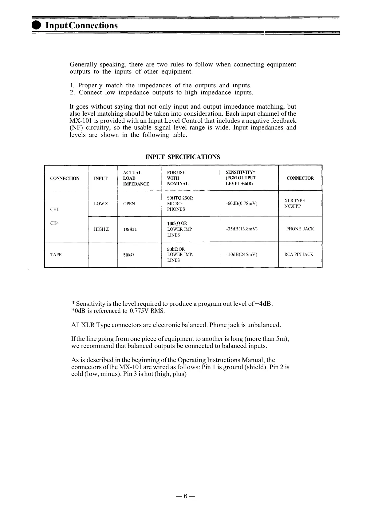 MX-101 is provided with an Input Level Control that includes a negative feedback
