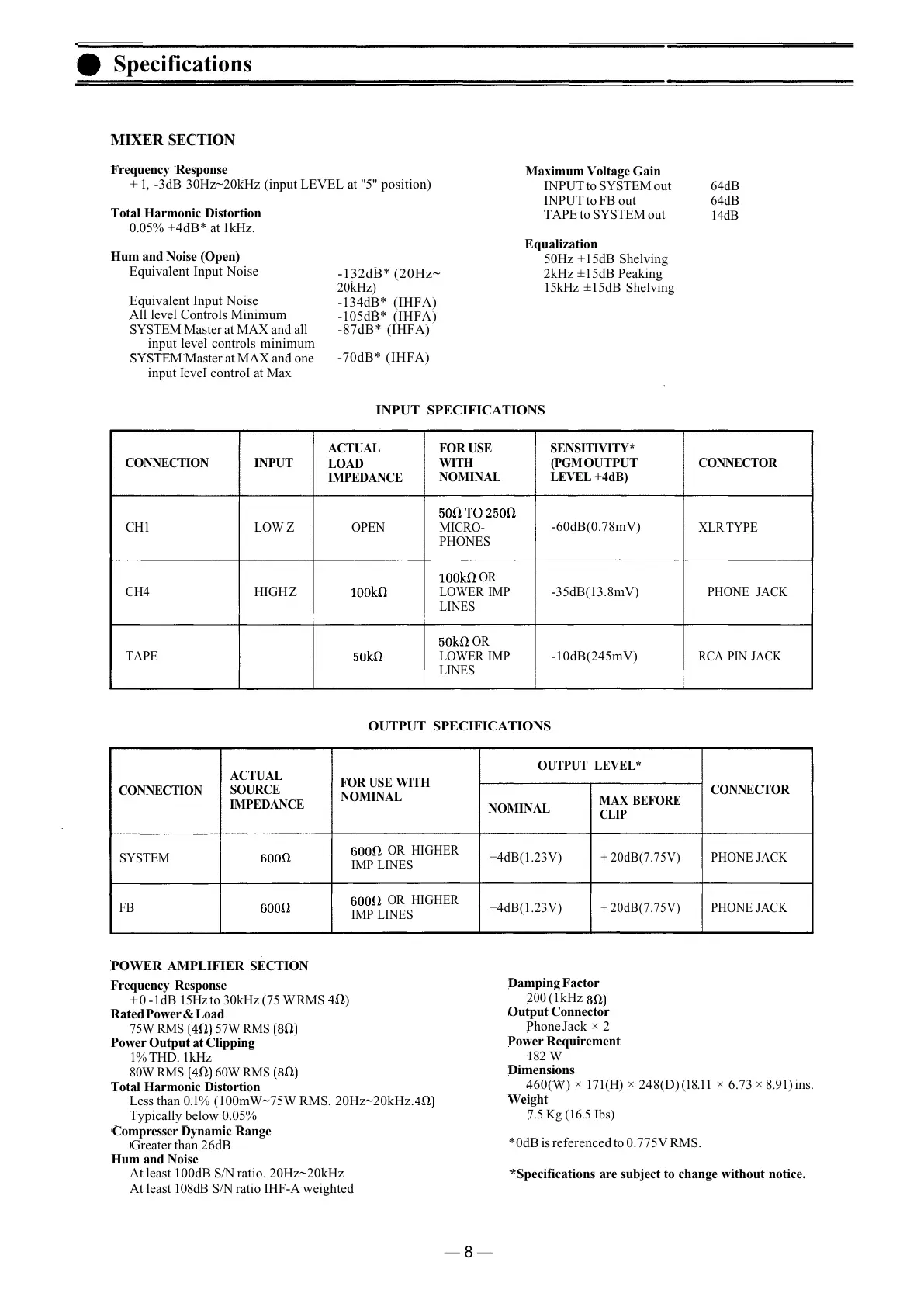 + 1, -3dB 30Hz~20kHz (input LEVEL at "5" position)