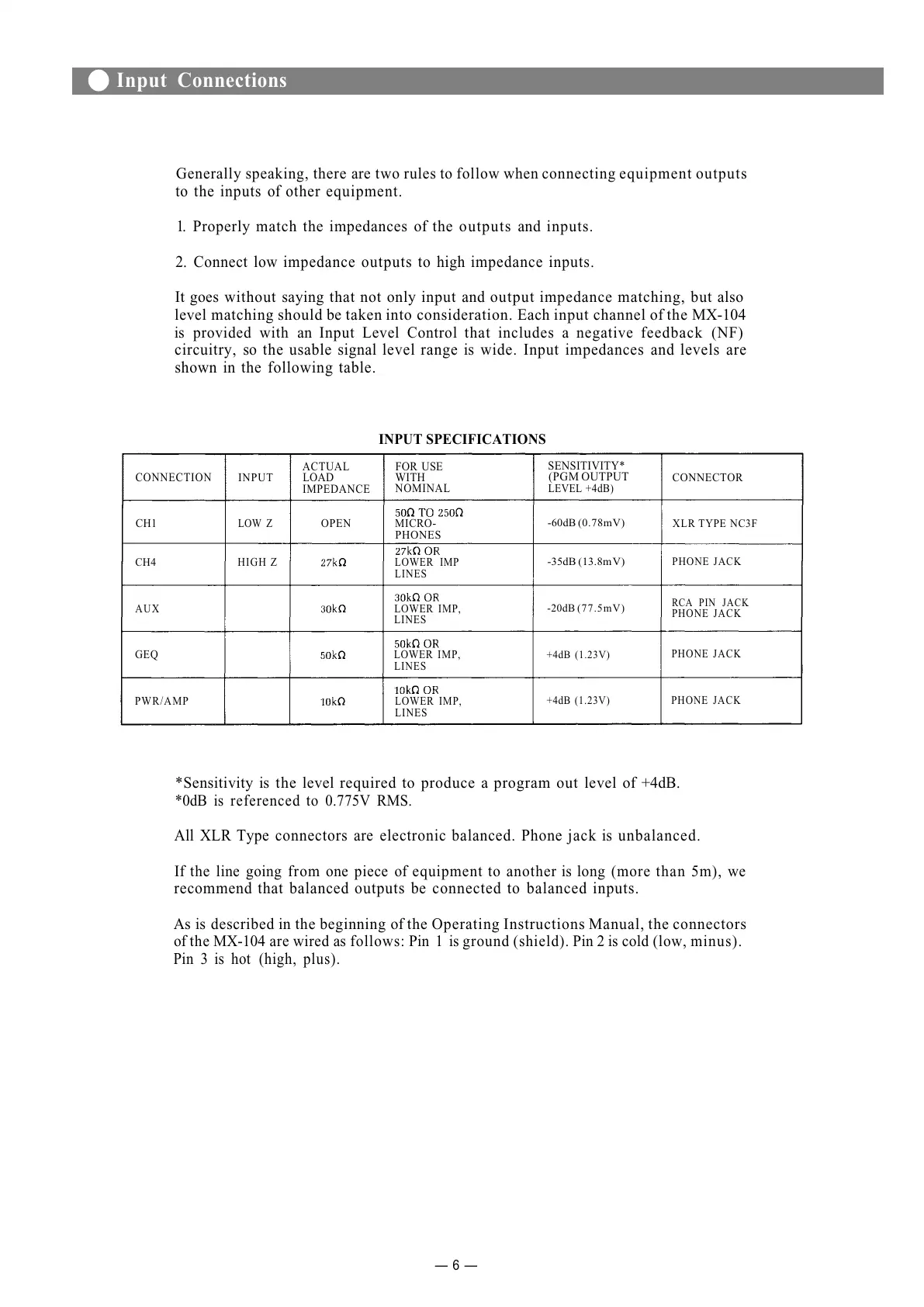 *Sensitivity is the level required to produce a program out level of +4dB.
