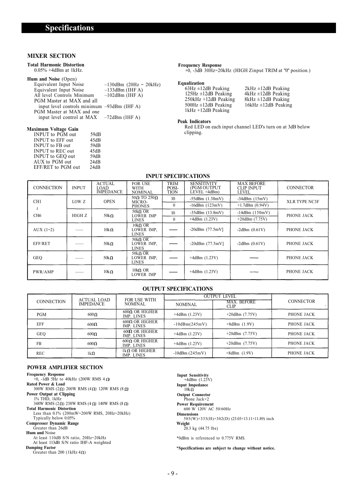 +0, -3dB 30Hz~20kHz (HIGH Zinput TRIM at "0" position.)