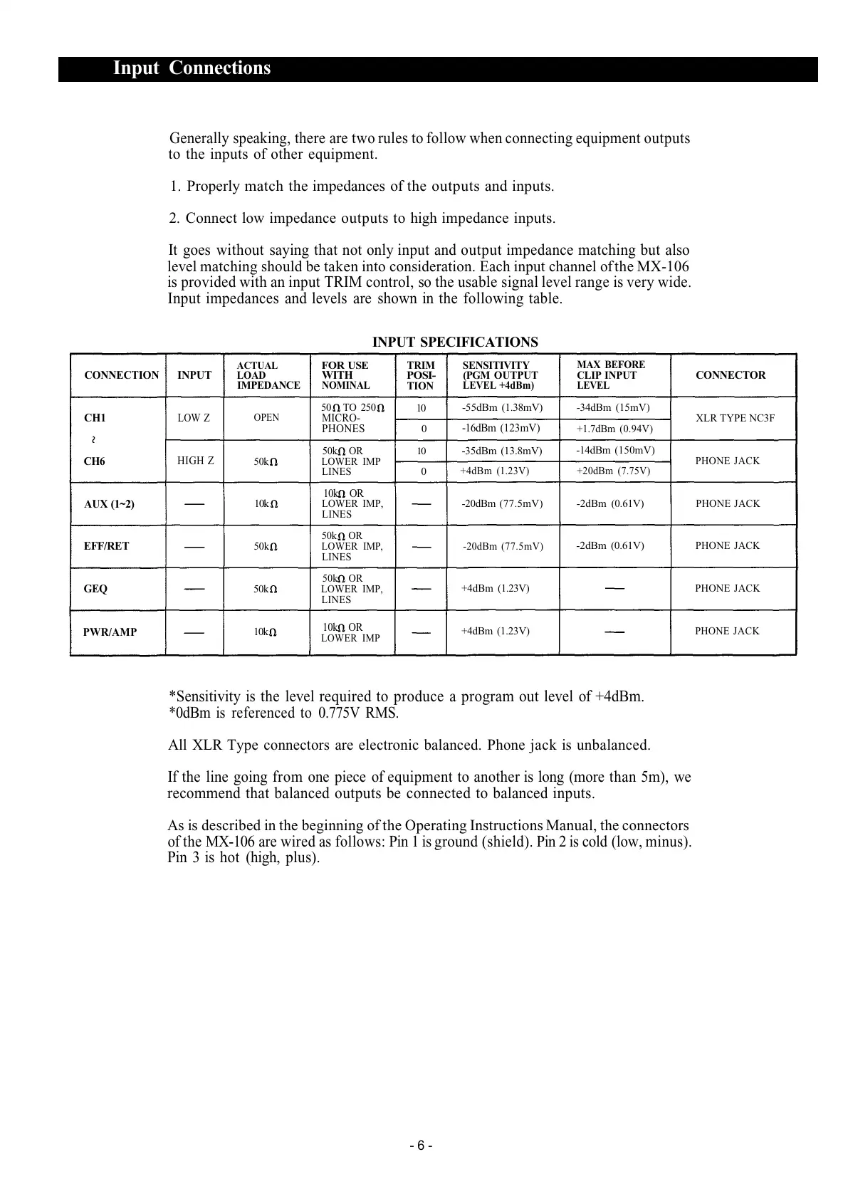 of the MX-106 are wired as follows: Pin 1 is ground (shield). Pin 2 is cold (low, minus).