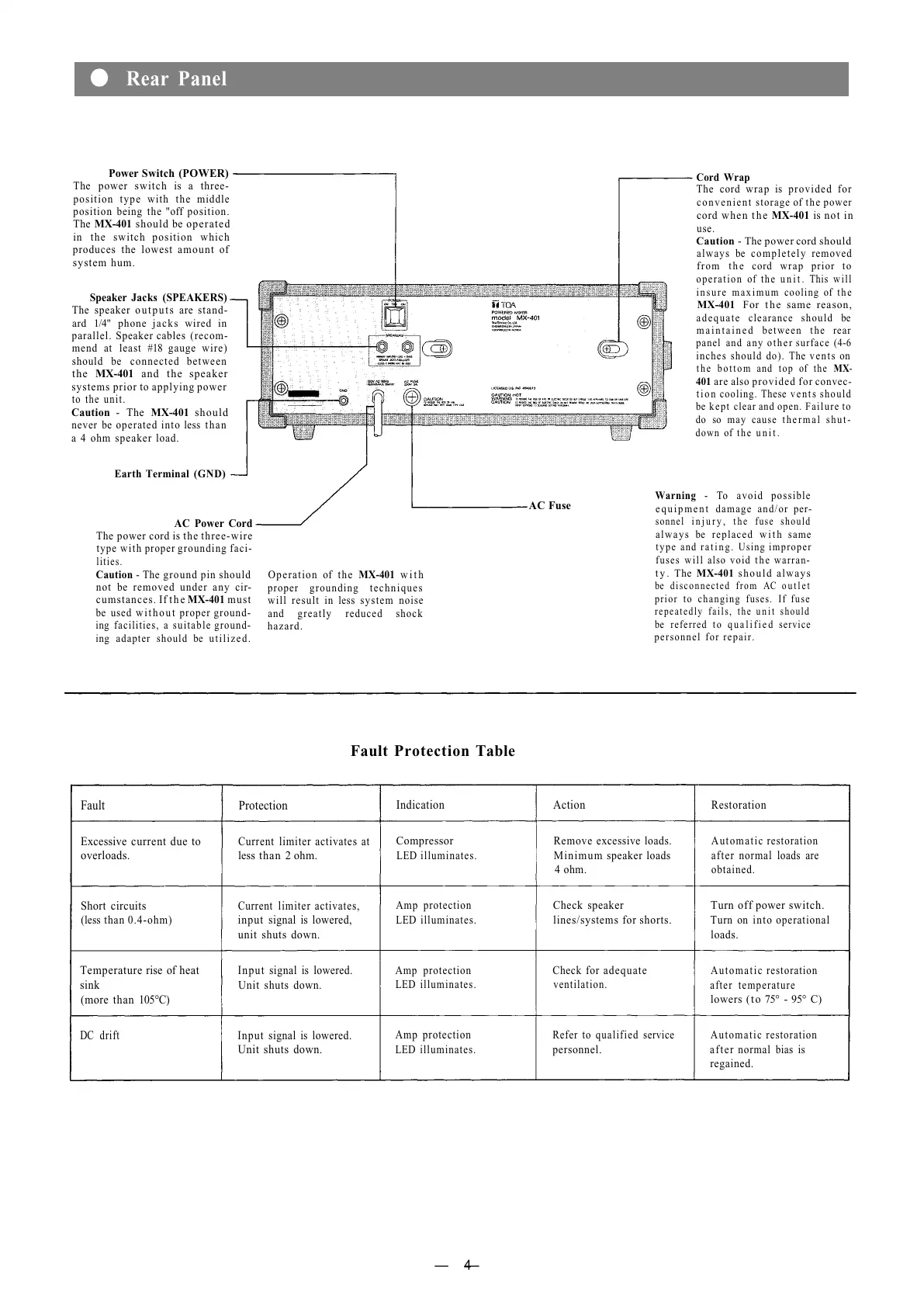 cord w h en t h e MX-401 is n ot in