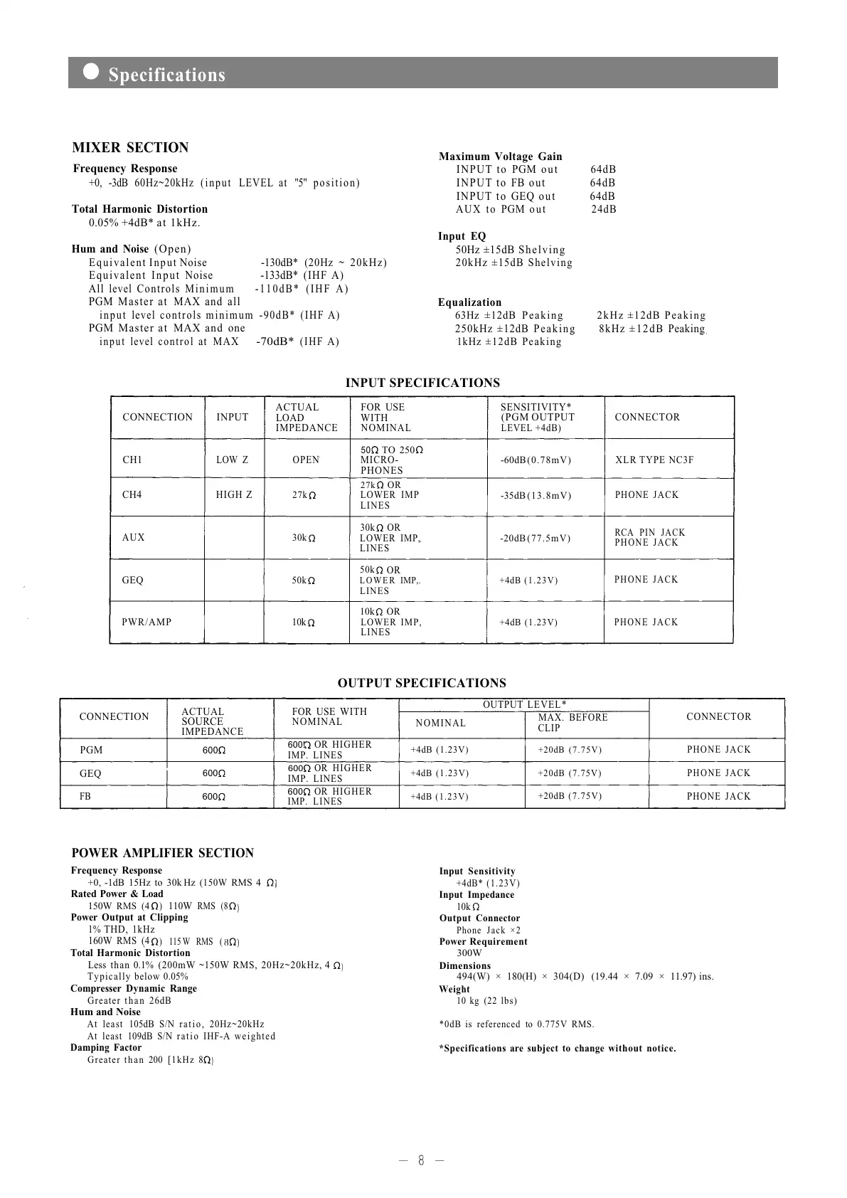 +0, -3dB 60Hz~20kHz (input LEVEL at "5" position)