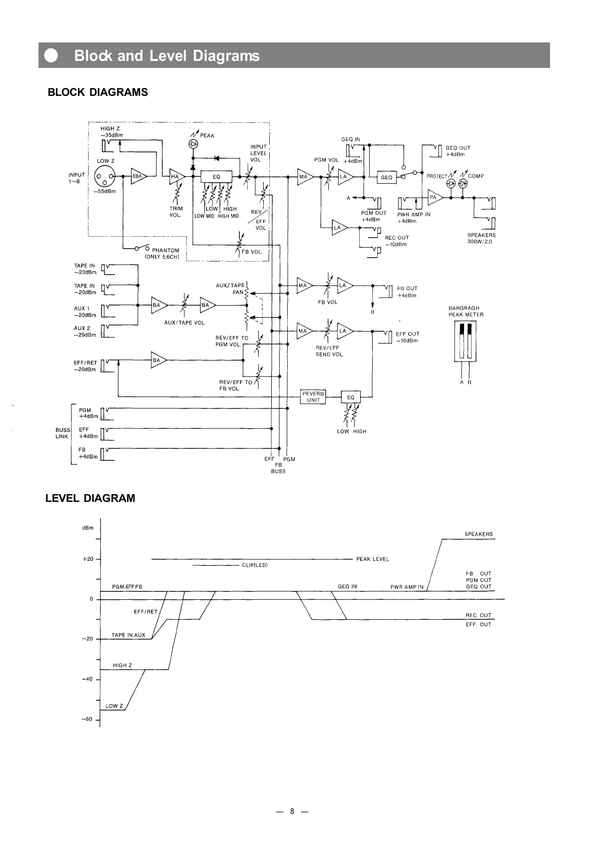 Toa MX-601 - Block and Level Diagrams; Signal Block Diagram; Signal Level Diagram