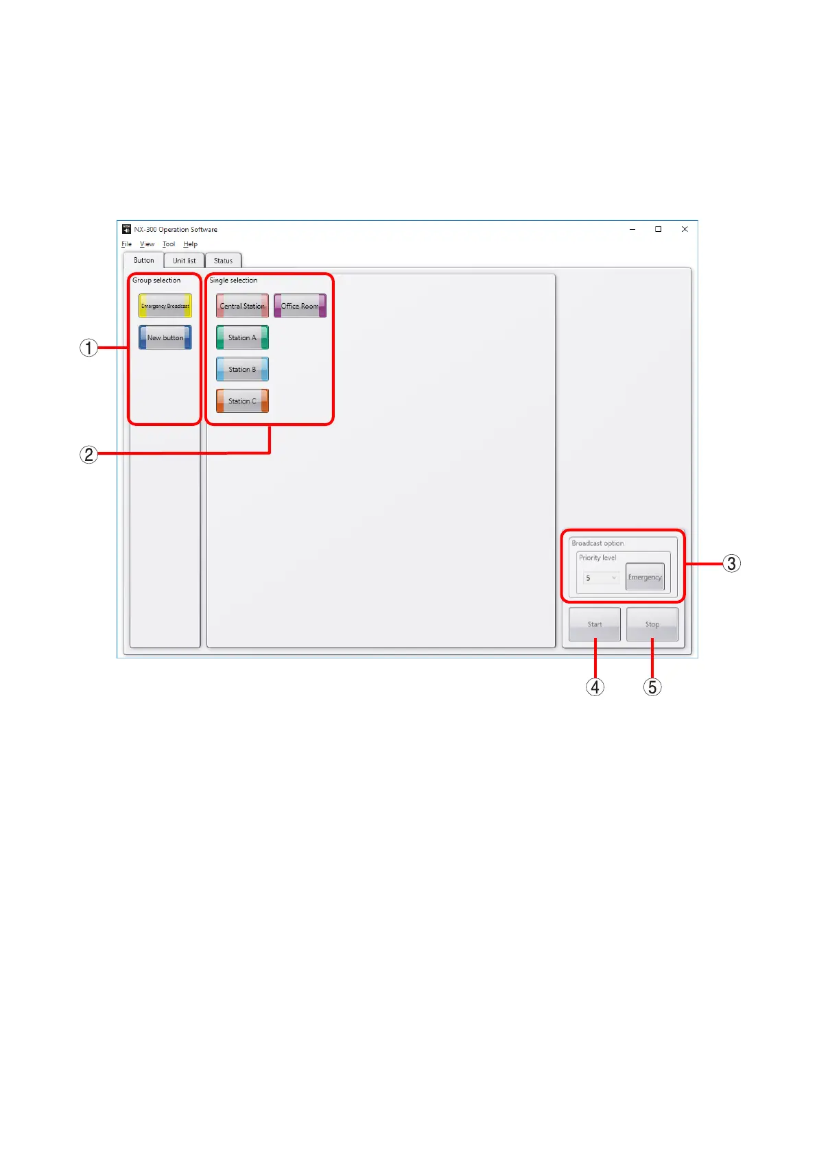 If the Emergency button is selected, priority level 1 is assigned to the broadcast.