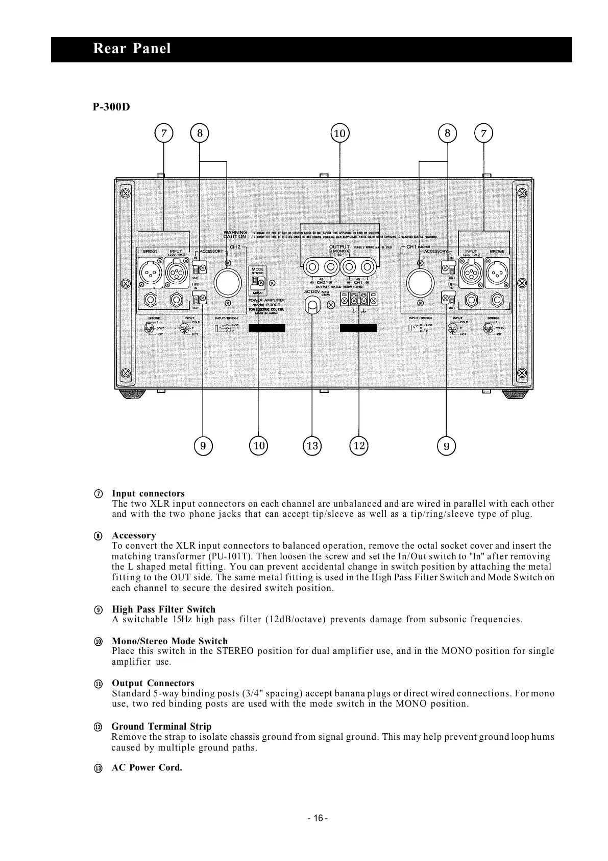 Place this switch in the STEREO position for dual amplifier use, and in the MONO position for single