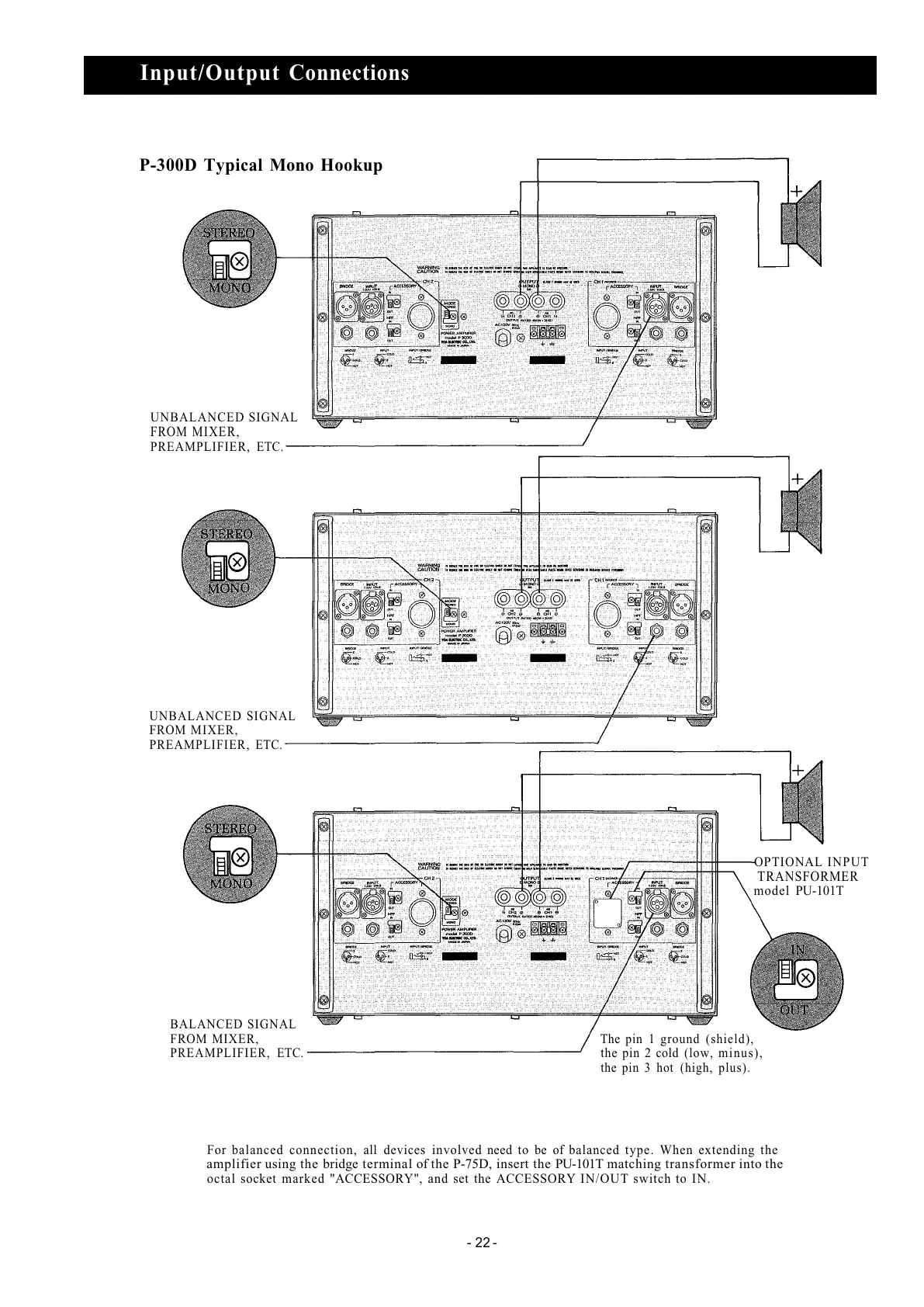 amplifier using the bridge terminal of the P-75D, insert the PU-101T matching transformer into the