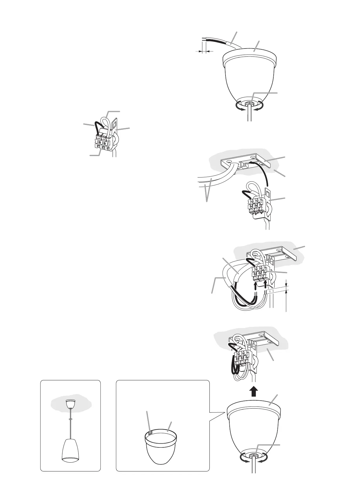 Step 6. Push the ceiling cover, slipped over the cord in Step 2,
