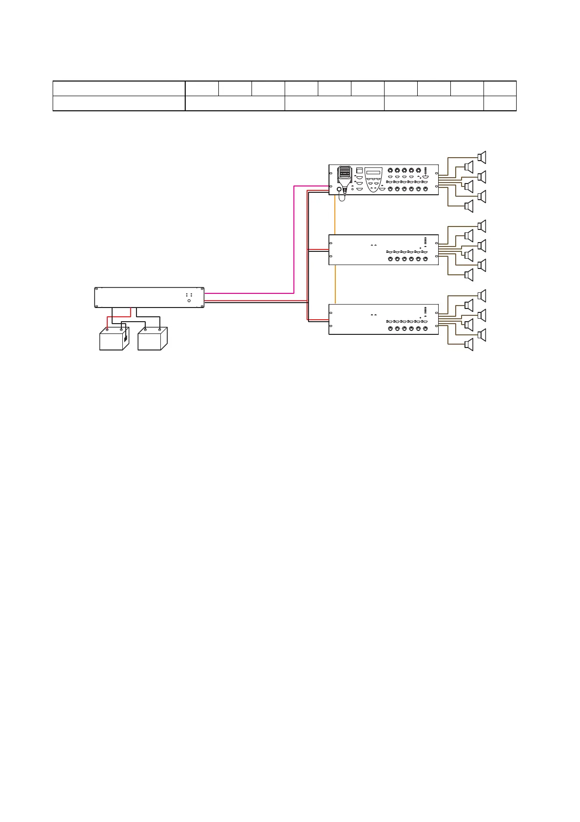 Below is an example showing that one VX-2000DS is required in a system including 3 VM amplifiers.
