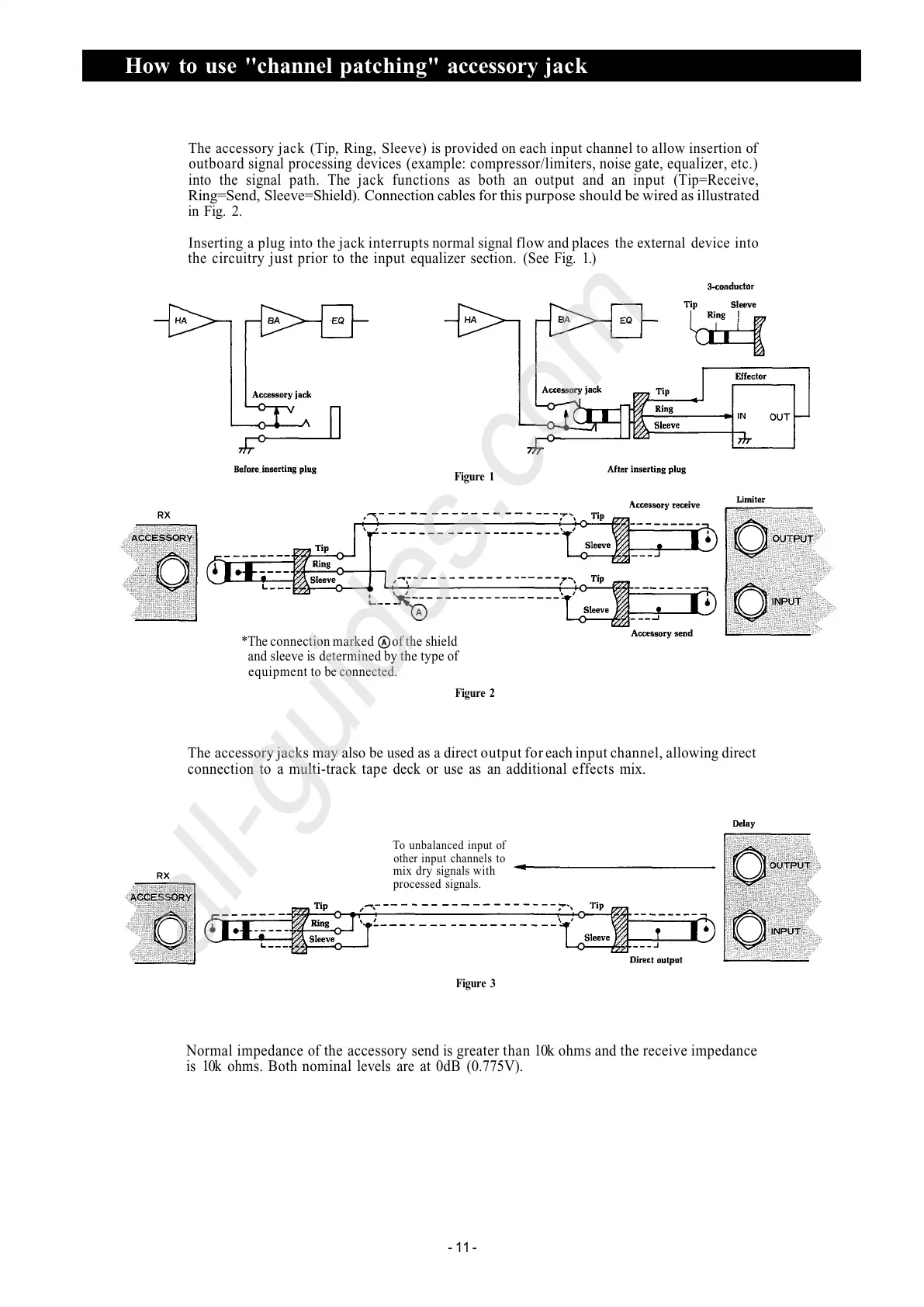 The accessory jack (Tip, Ring, Sleeve) is provided on each input channel to allow insertion of