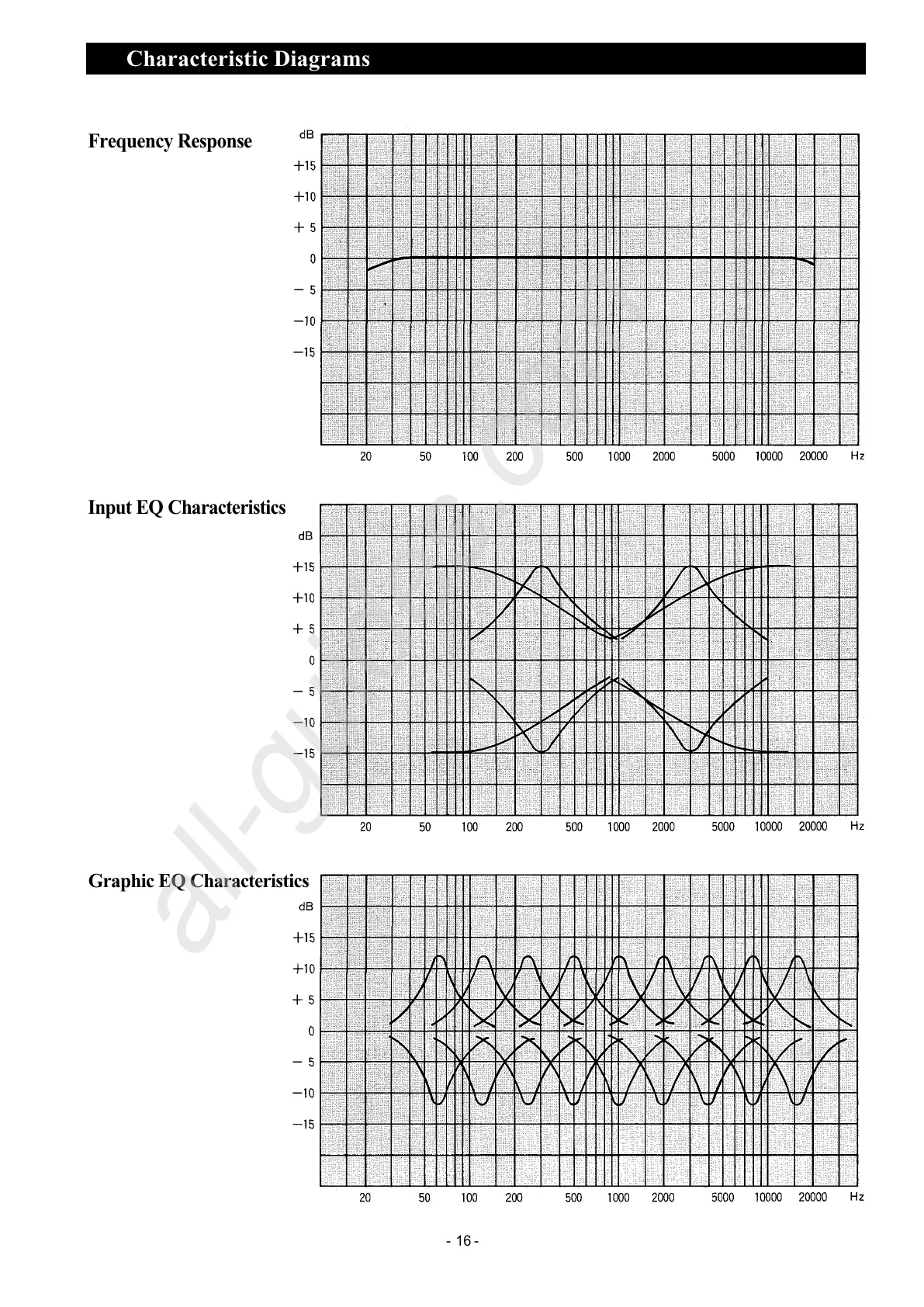 Toa RX-208 - Characteristic Diagrams; Frequency Response Diagram; Equalizer Characteristic Diagrams
