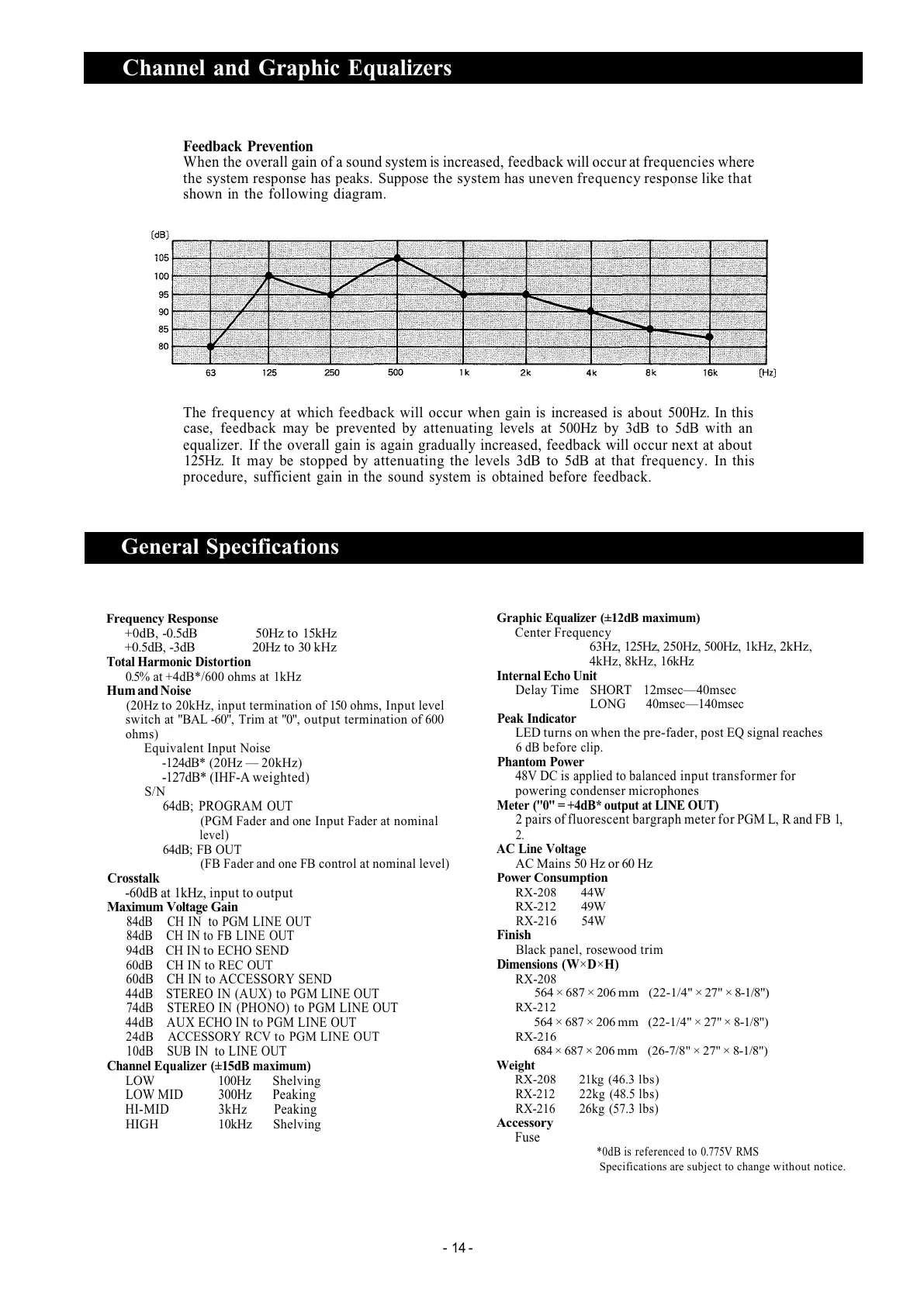 case, feedback may be prevented by attenuating levels at 500Hz by 3dB to 5dB with an