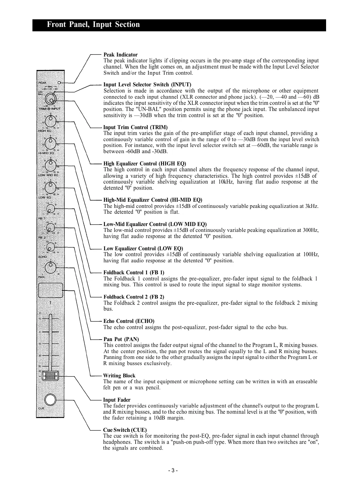 Front Panel, Input Section