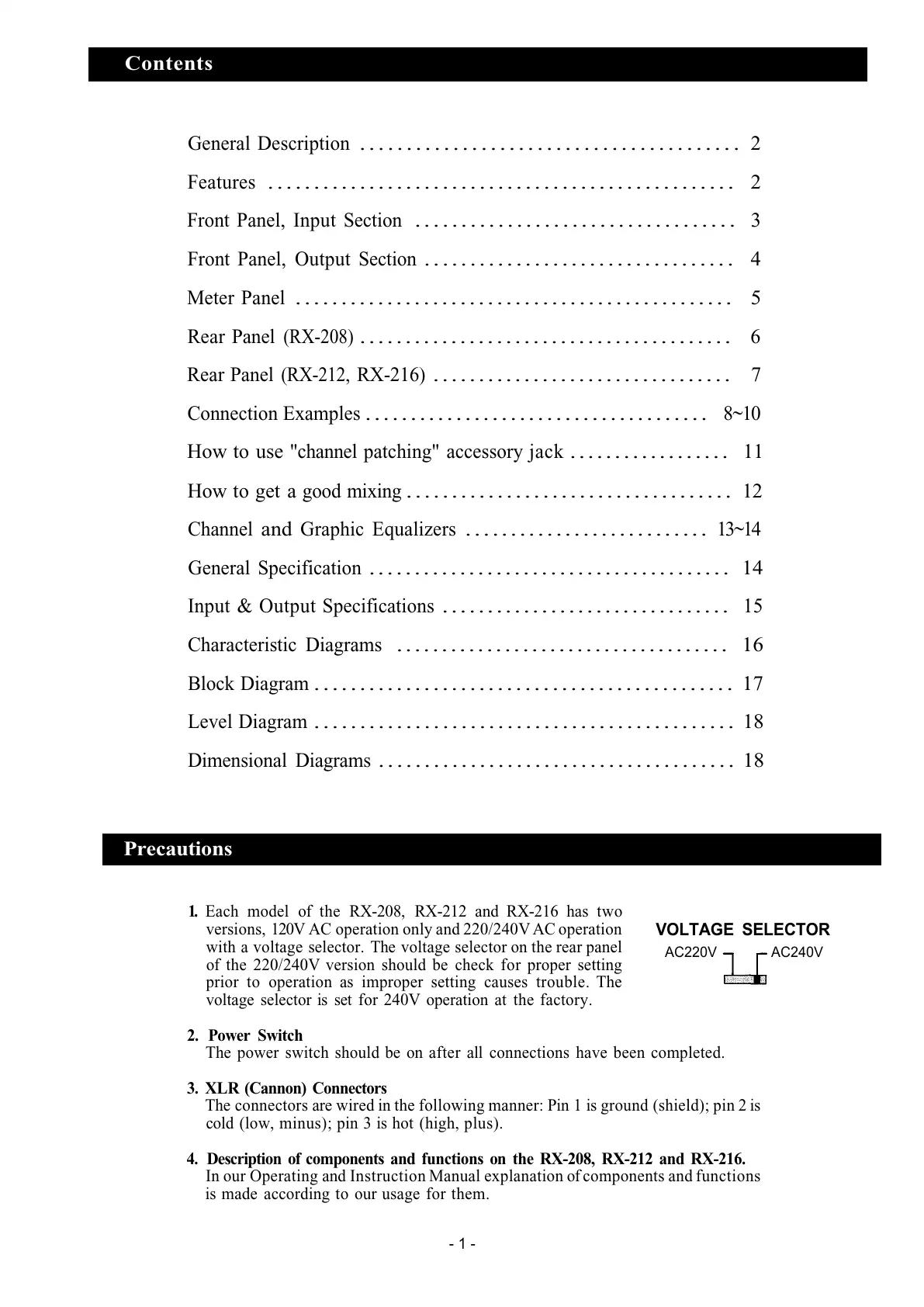 1. Each model of the RX-208, RX-212 and RX-216 has two