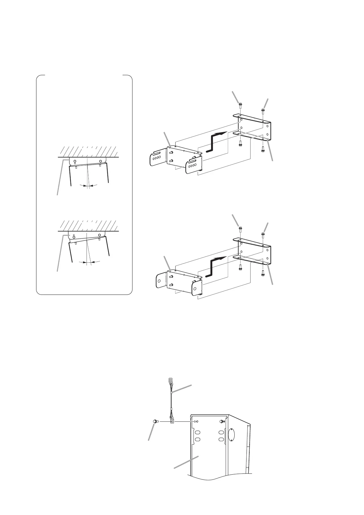 Remove the safety wire mounting bolt on the speaker’s rear panel, then fix the safety wire to the