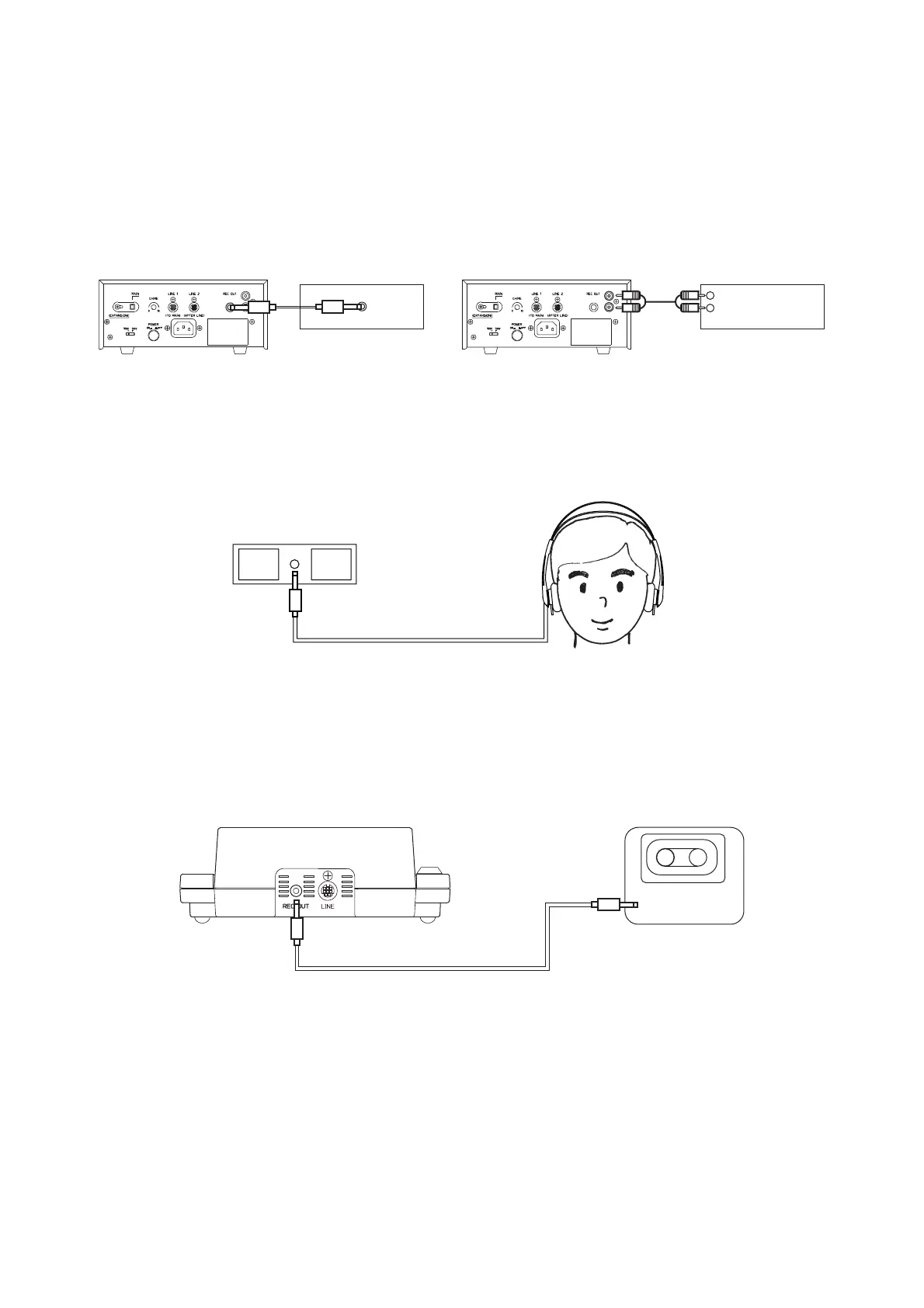 1. Connect the center amplifier's recording output to the recorder's recording input. (The connection cable is