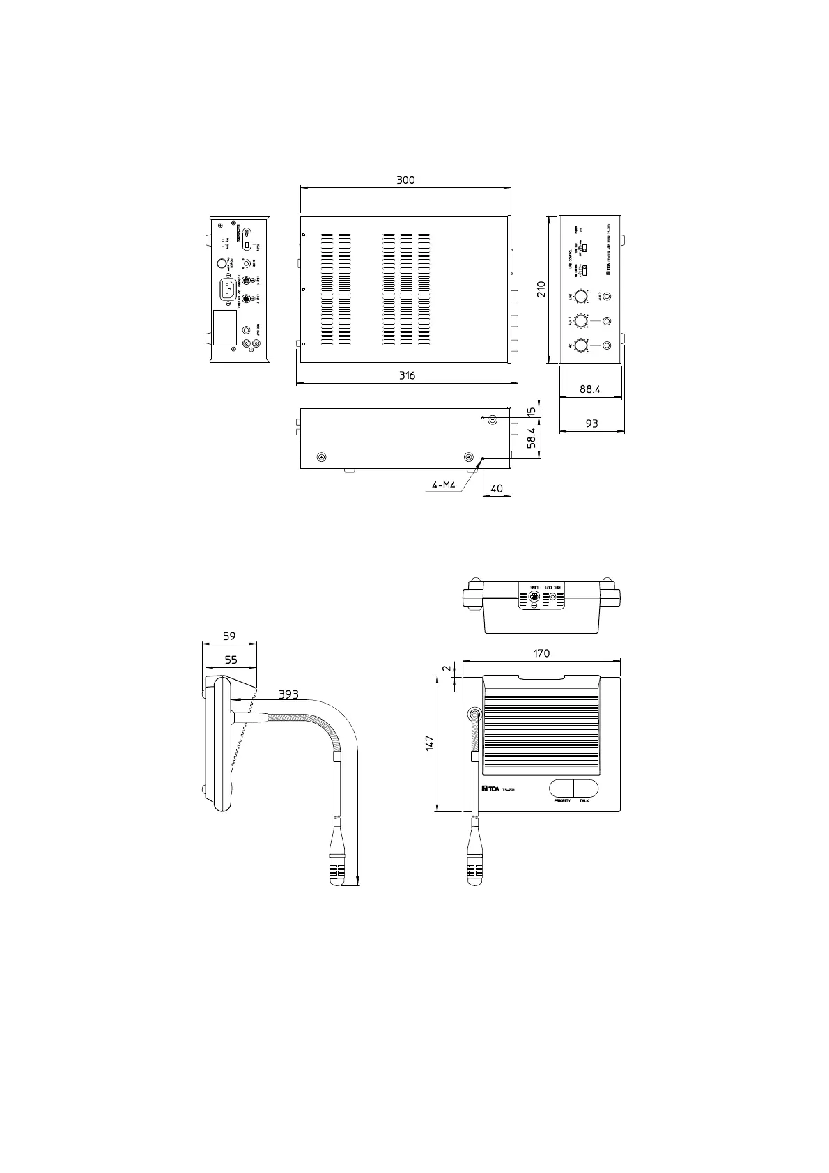 Toa TS-700 - Dimensional Diagram