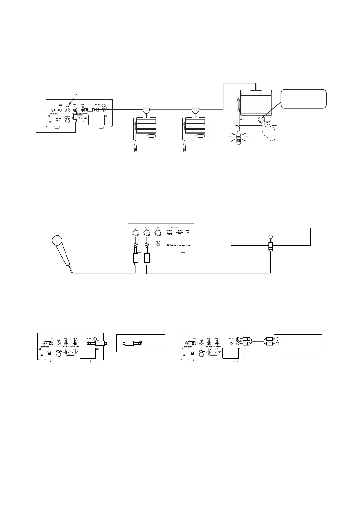 7. To record the contents of the conference, connect the center amplifier's recording output terminal to the