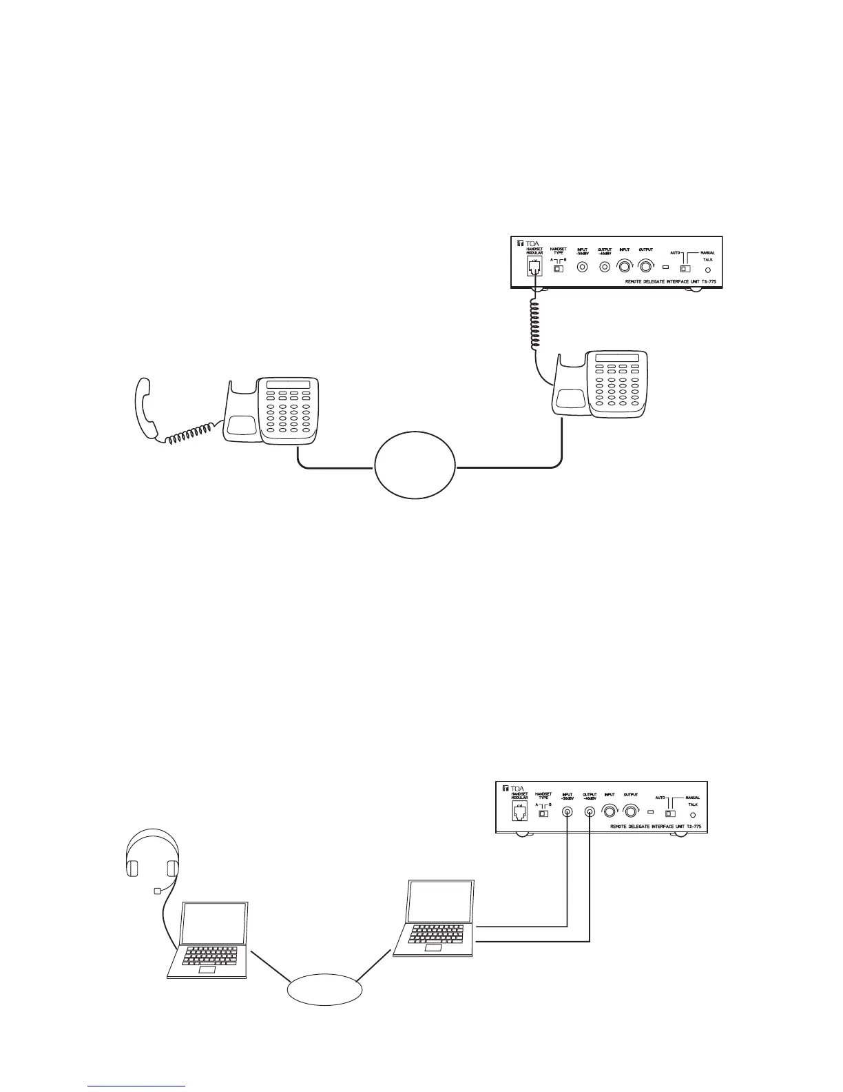 and connect the conference room telephone or PC to the Remote Delegate Interface unit.