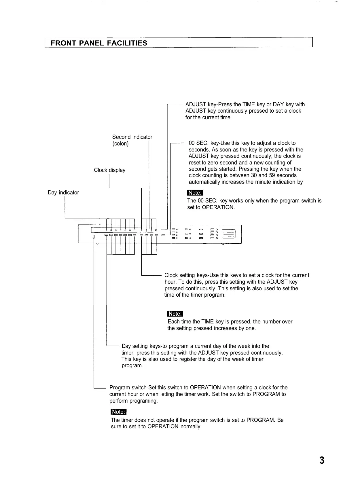 Program switch-Set this switch to OPERATION when setting a clock for the