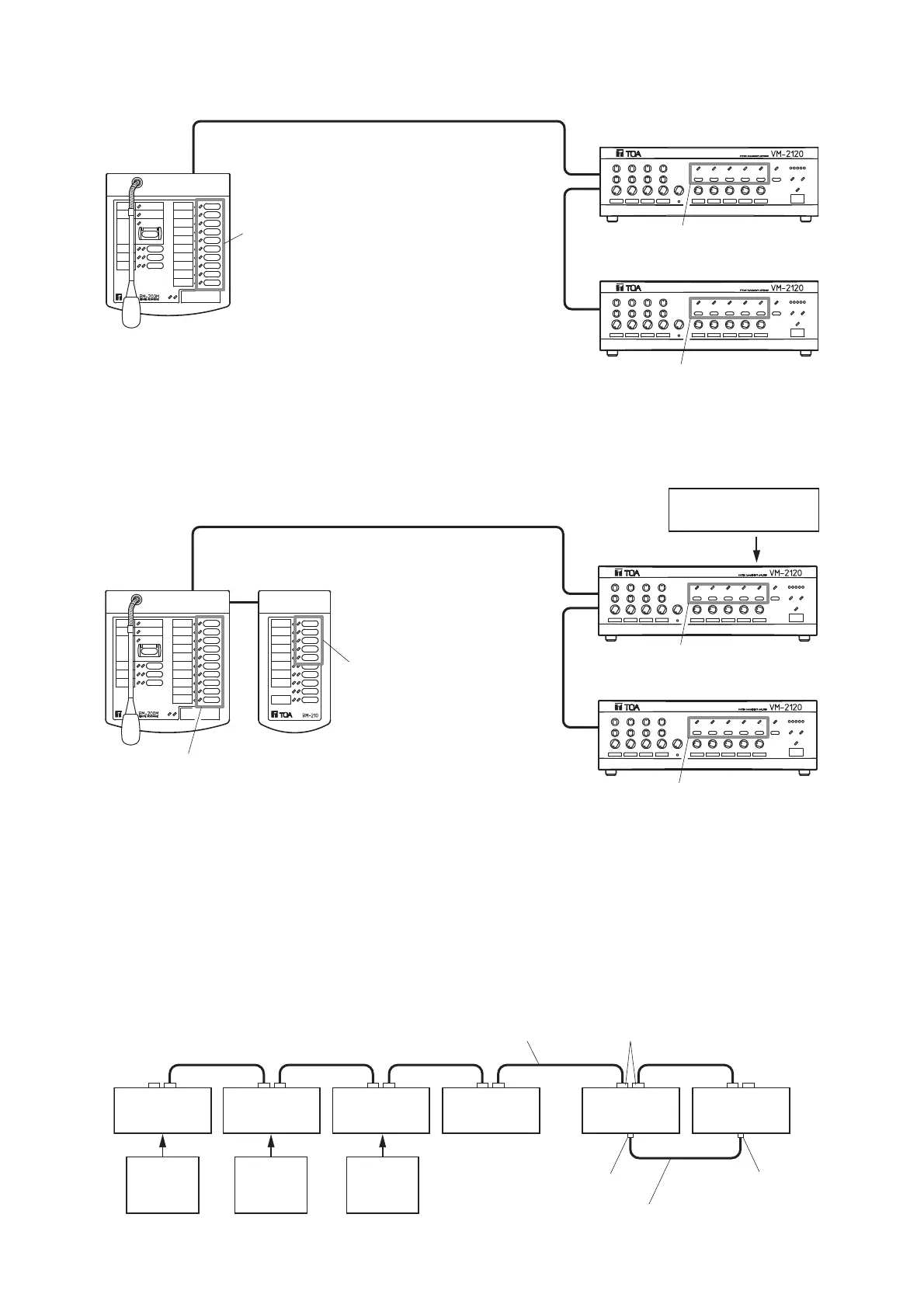 Using the specified cable, connect between the VM amplifier(s) and Remote Microphone(s) via their LINK