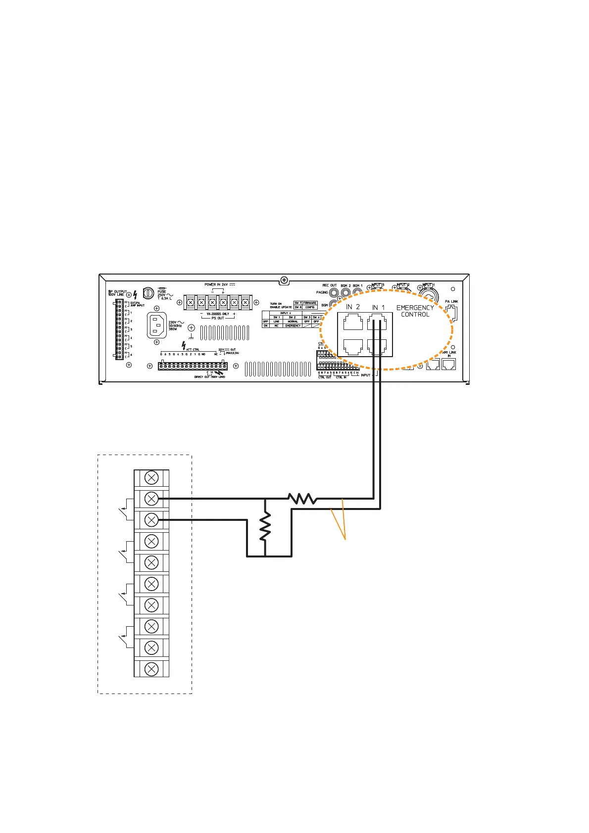control input (Emergency control input terminals 1 – 5) and Voltage control input (Emergency control input