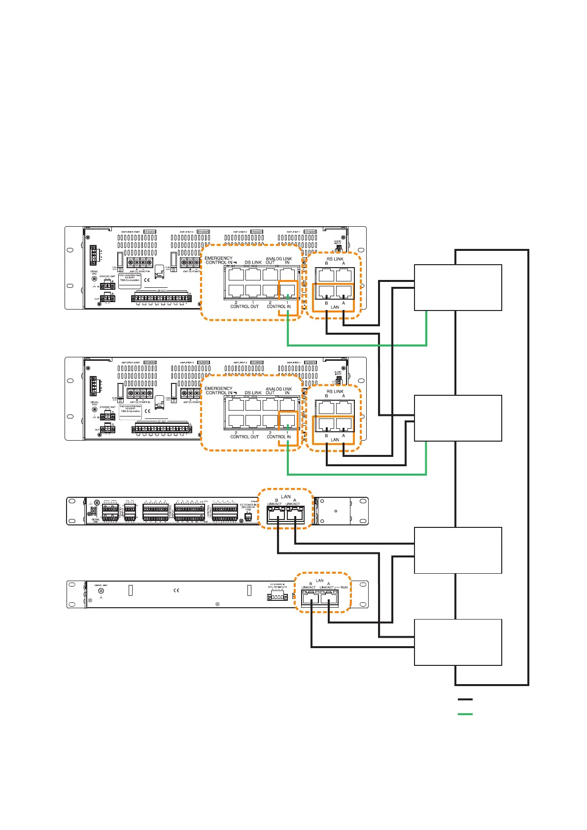 In the connection example below, both LAN link A and B terminals of each unit are connected to the same