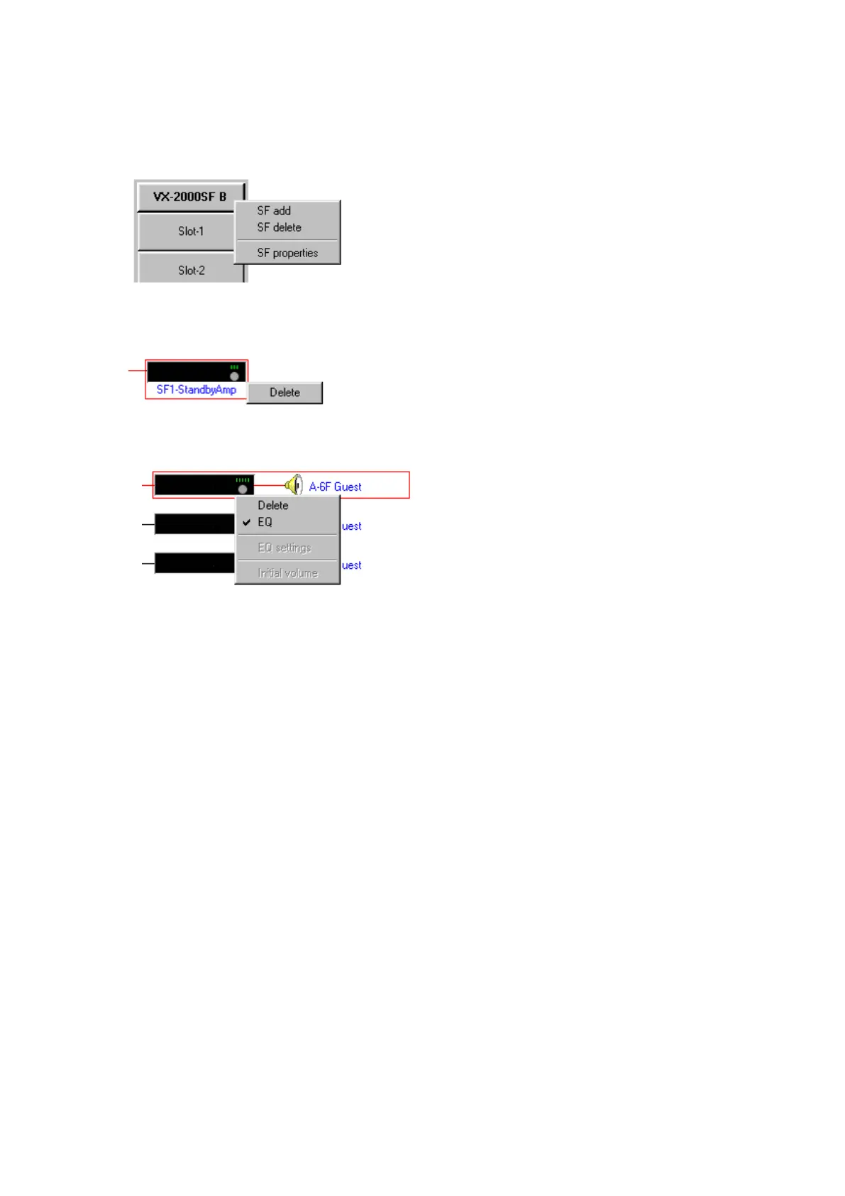 [Pop-up menu operation to change the VX-2000SF configuration]