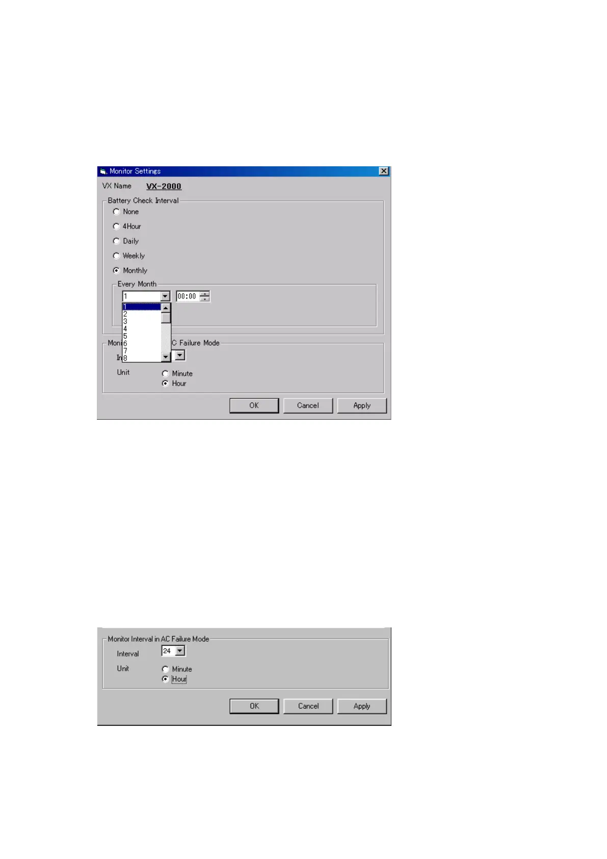 The monitoring interval can be set for once every 1 – 24 hours in 1-hour increments or for 1 – 60