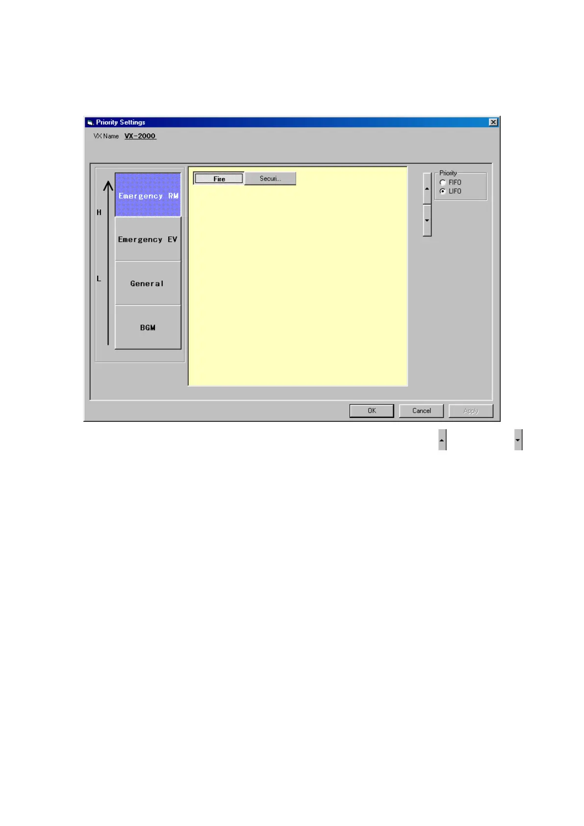 When the Priority Settings window opens, the Emergency RM priority display will appear.