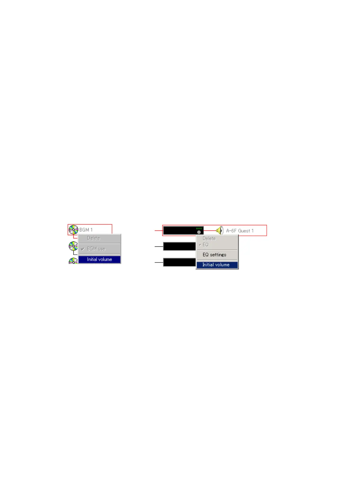 mouse button over the corresponding equipment block and selecting [Initial Volume] from the pop-up menu
