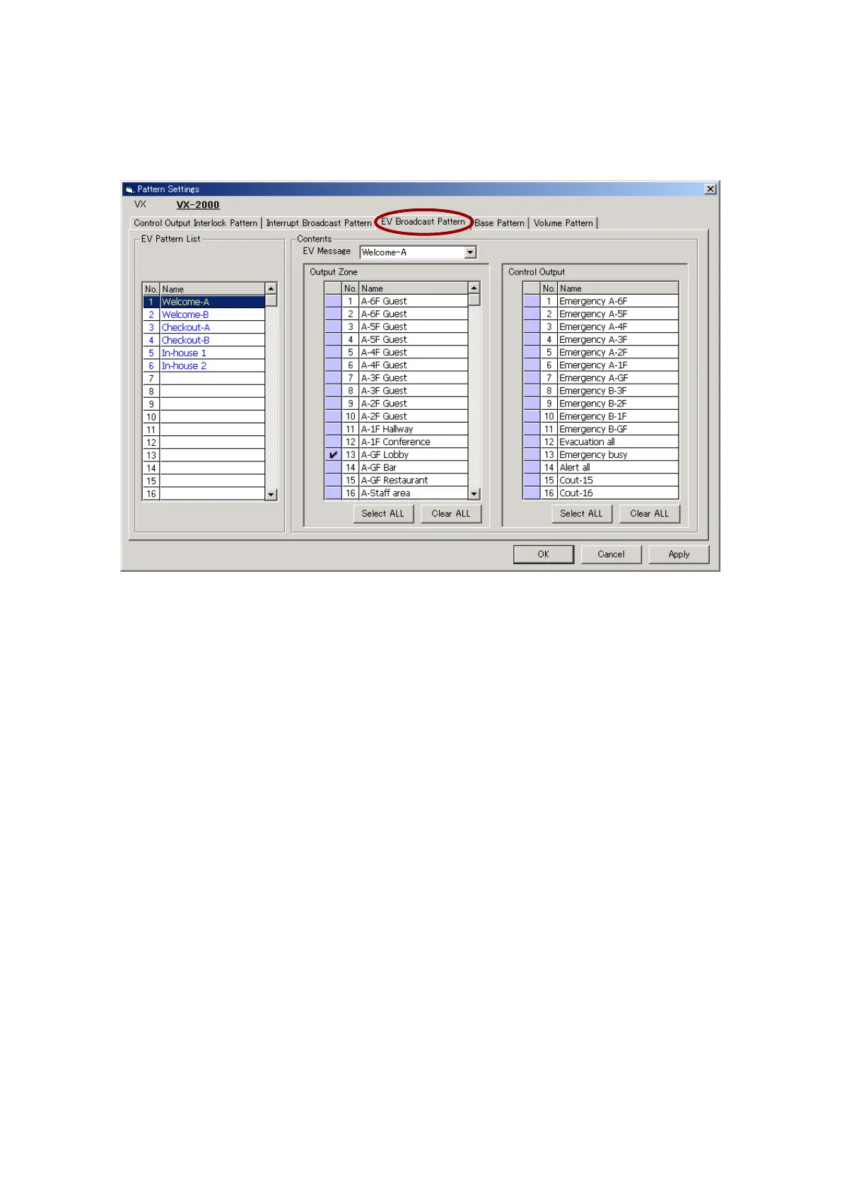Step 1. Click on the [EV Broadcast Pattern] tab.