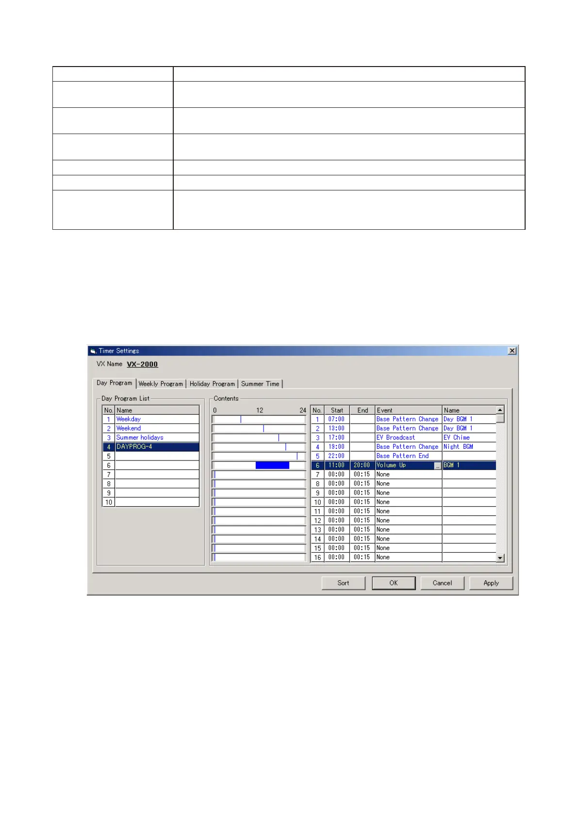 Tip: Clicking on the [Sort] button sorts the events set for the Day program in chronological order.